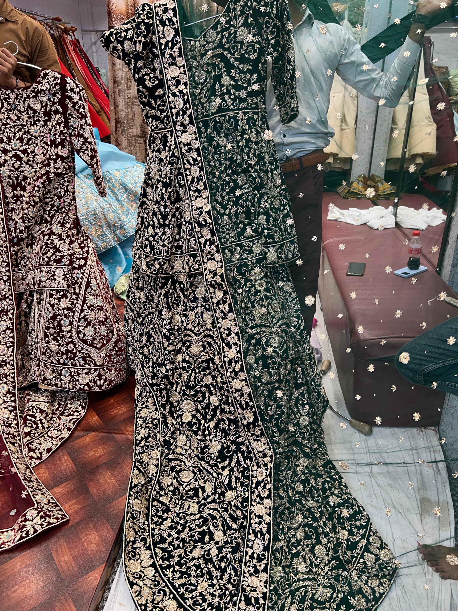 Green Designer Peplum long Dress Farshi Gaharara Pakistani Bridal Dress Muslim Special
