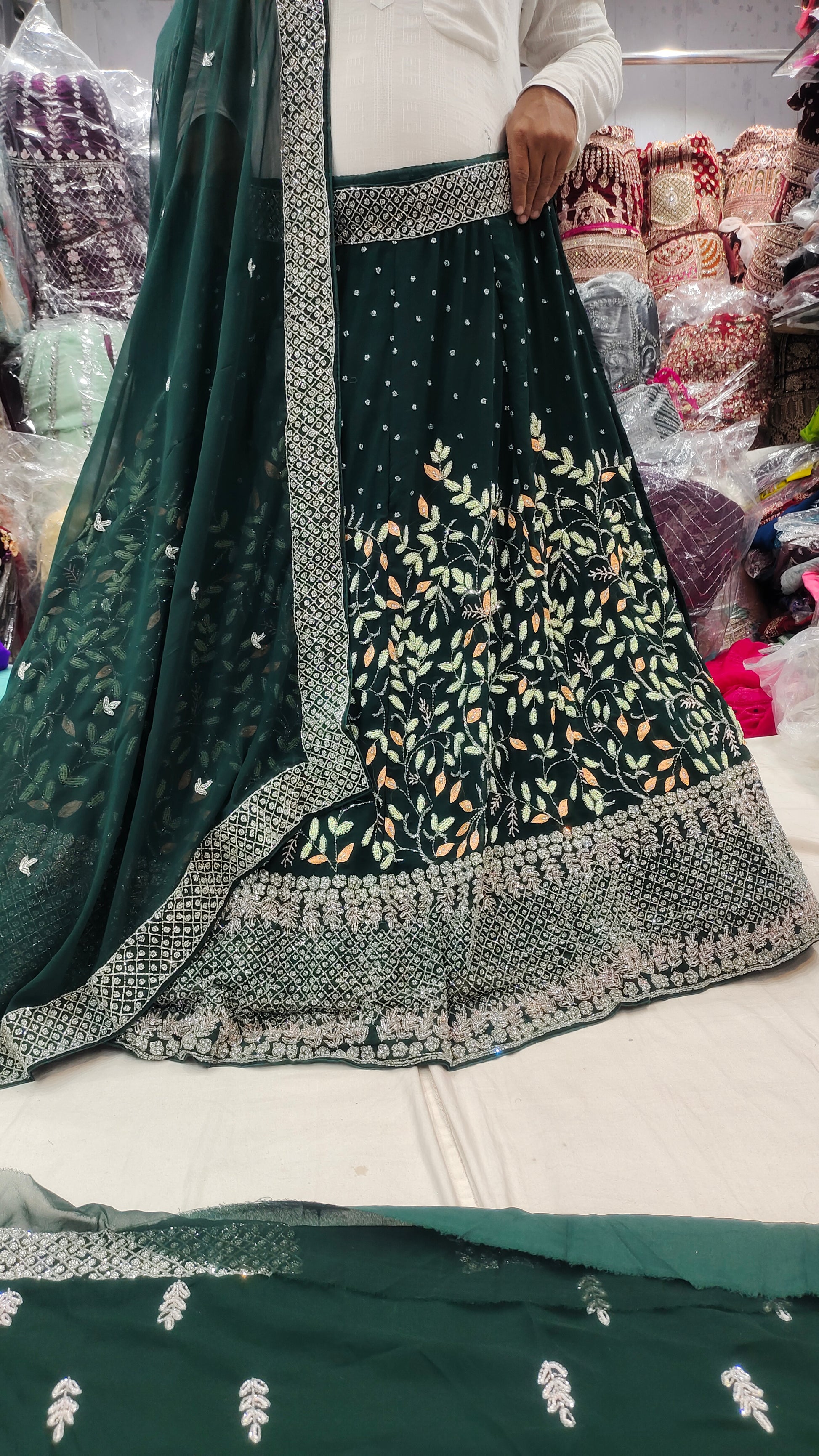 Discover elegance with our Designer Lehenga Collection, perfect for any occasion. These free-size lehengas are thoughtfully designed to accommodate all body types and can be customized to suit your unique style. Crafted to elevate your wardrobe, each lehenga set includes a semi-stitched skirt, unstitched blouse fabric (choli), and a matching chunni (dupatta), making it an ideal choice for weddings, festivals, and special celebrations.