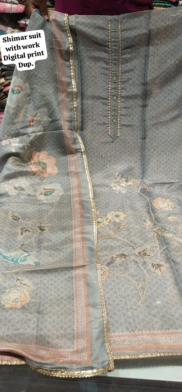 Stunning grey black organza ladies women's unstitched Salwar suits dress material (free size)