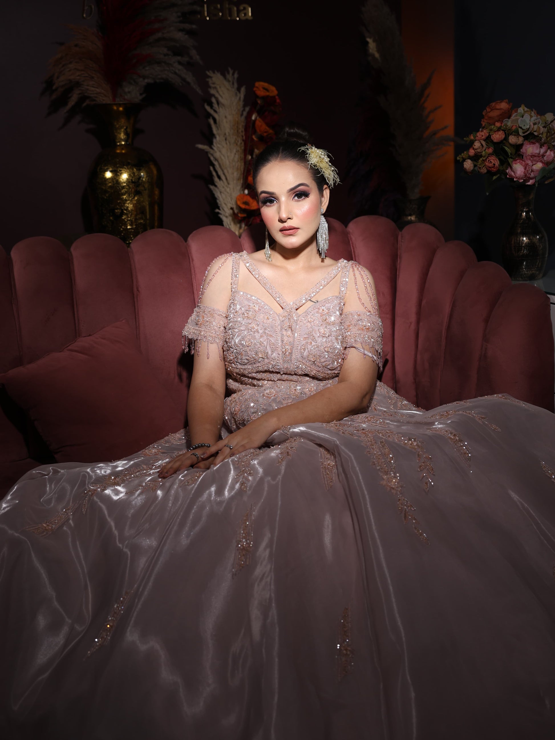 - ₹25,000 – ₹50,000: Designer gowns perfect for receptions, cocktails & red-carpet moments