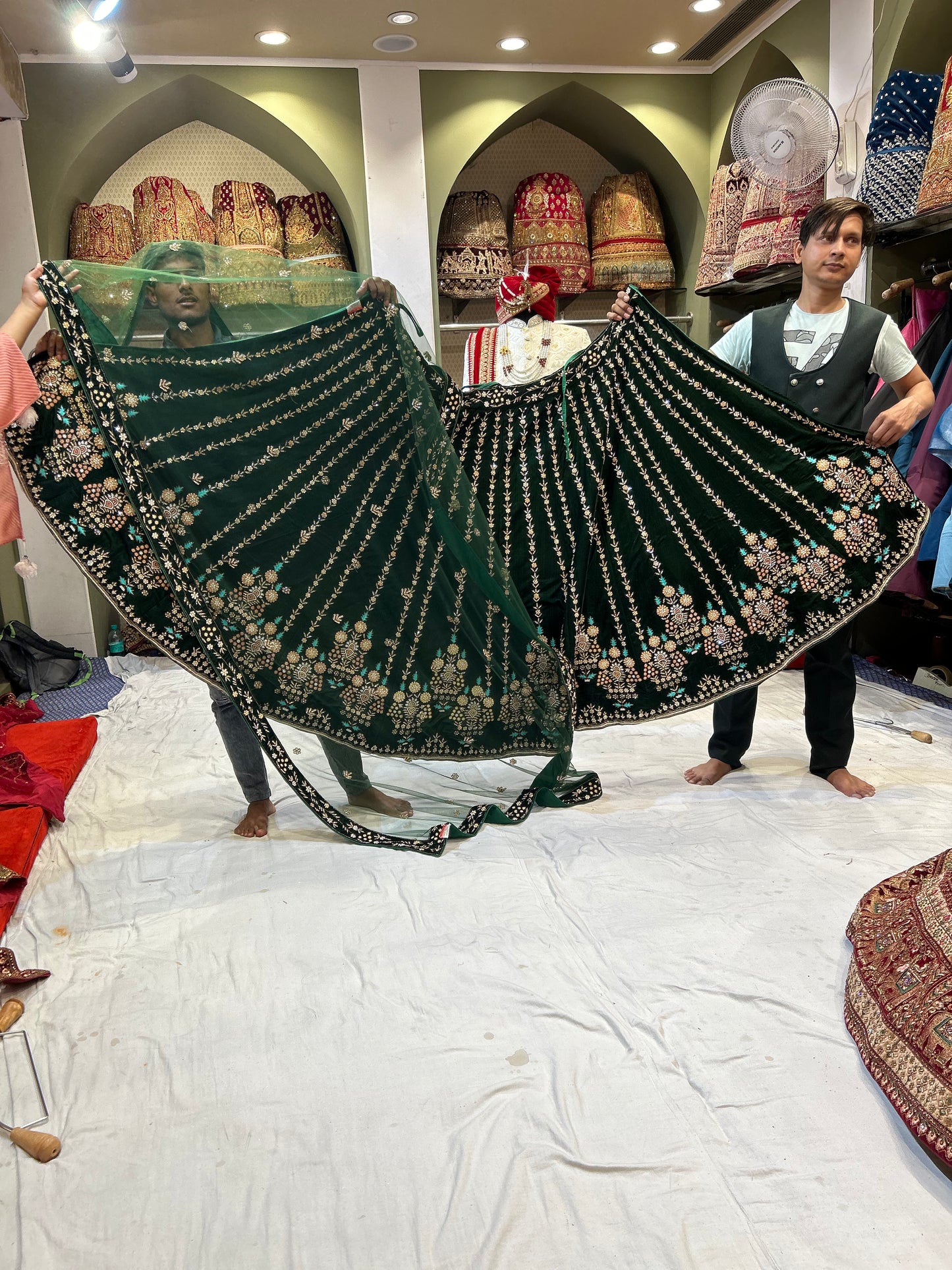 Attractive pista green peacock crop top Lehenga Happy Customer