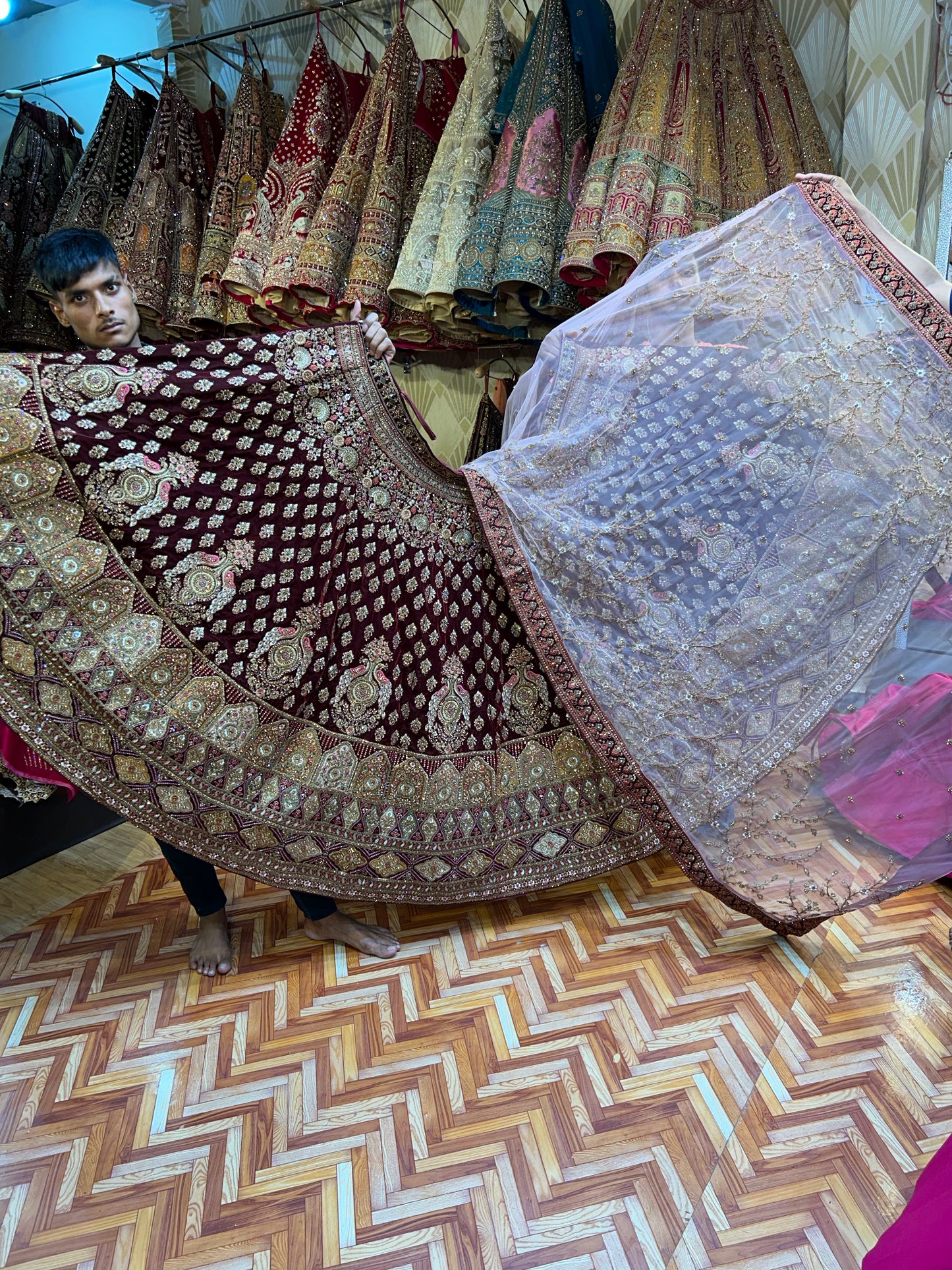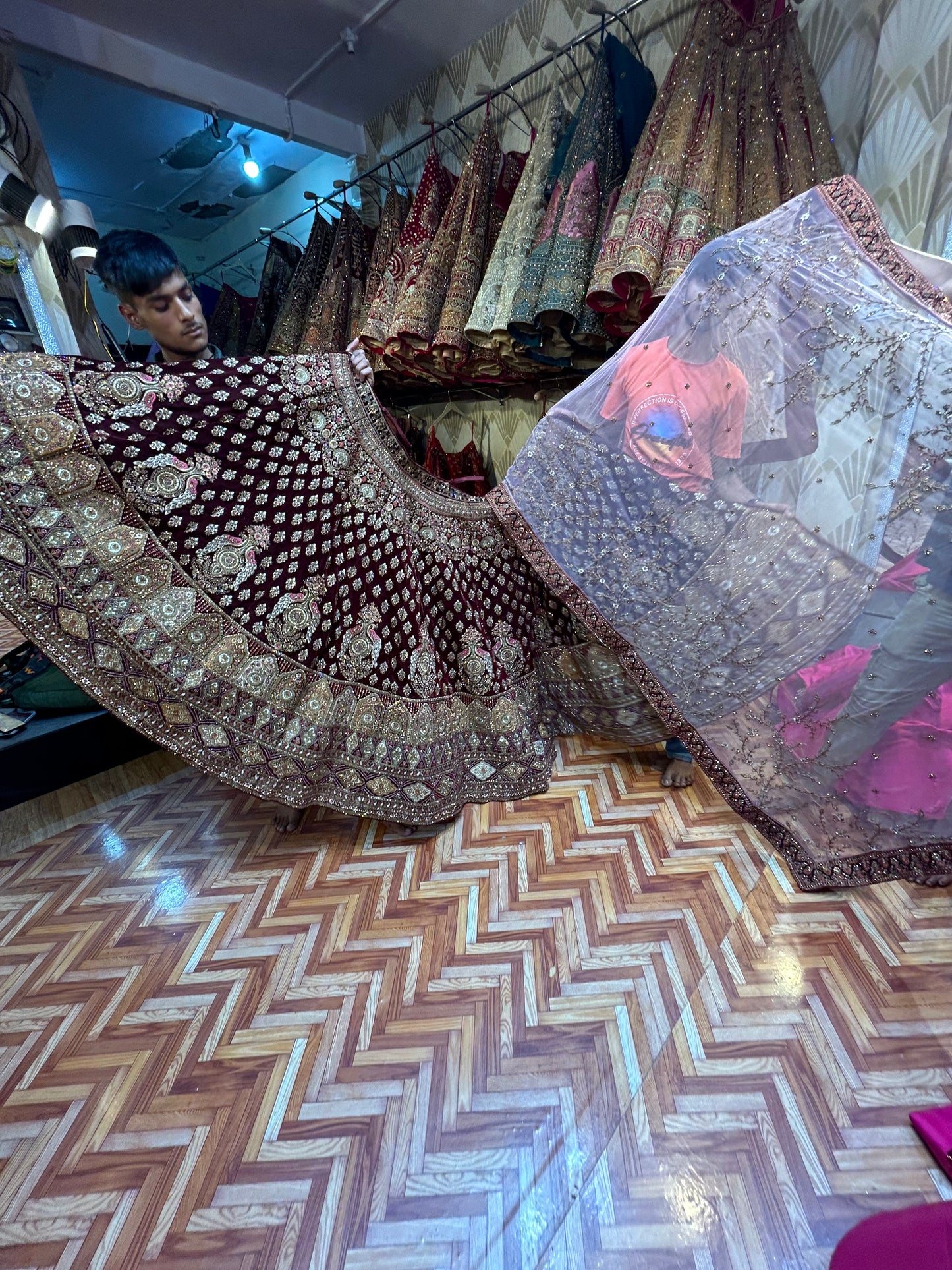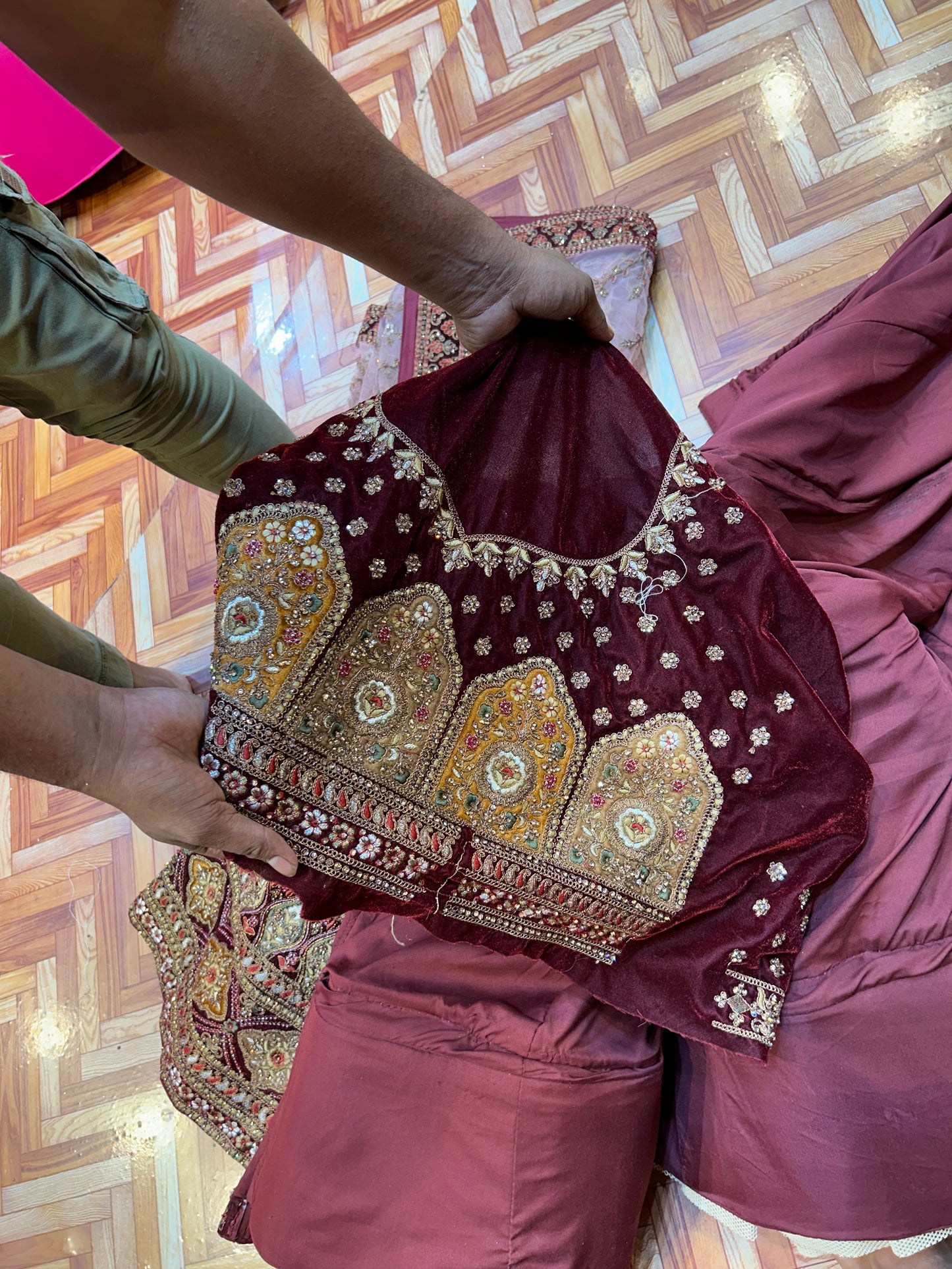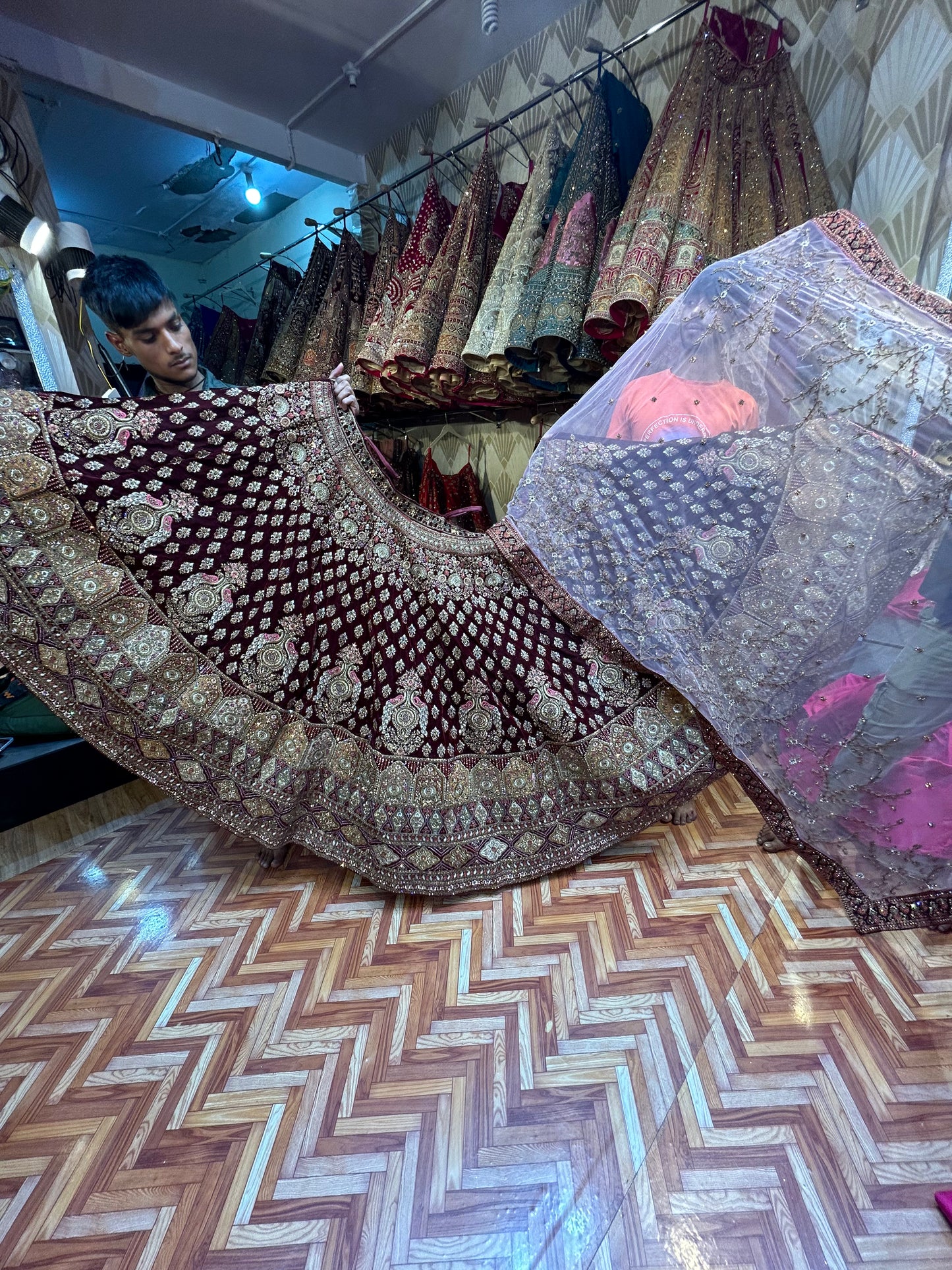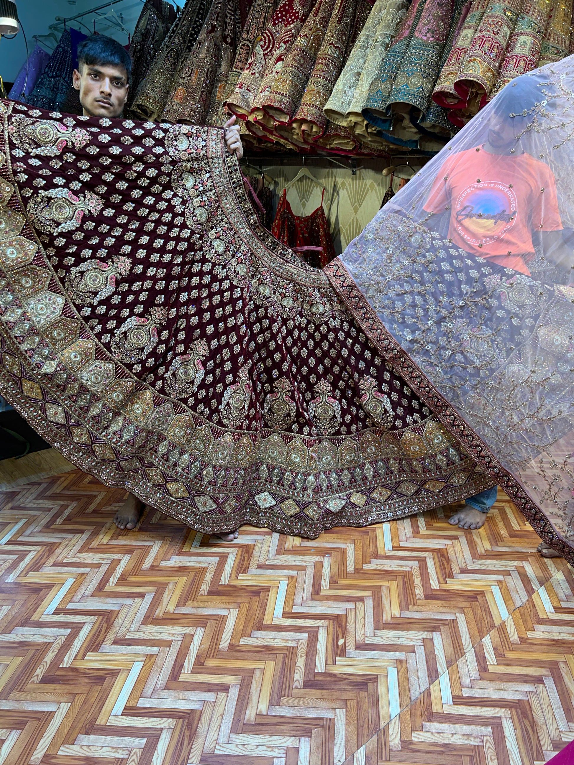 Designer jhumka Maroon bridal lehenga ( happy customer)