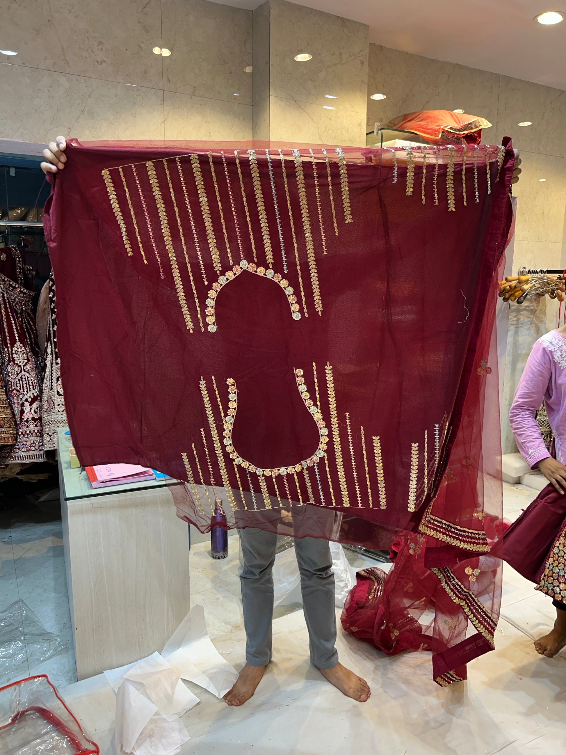Designer jhumka Maroon bridal lehenga ( happy customer)