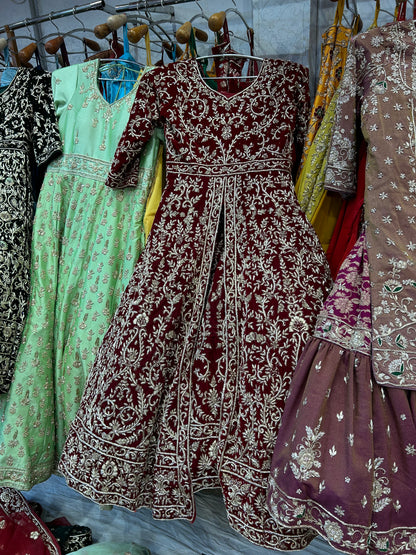 Amazing Red Peplum long Dress Farshi Gaharara Pakistani Bridal Dress Muslim Special