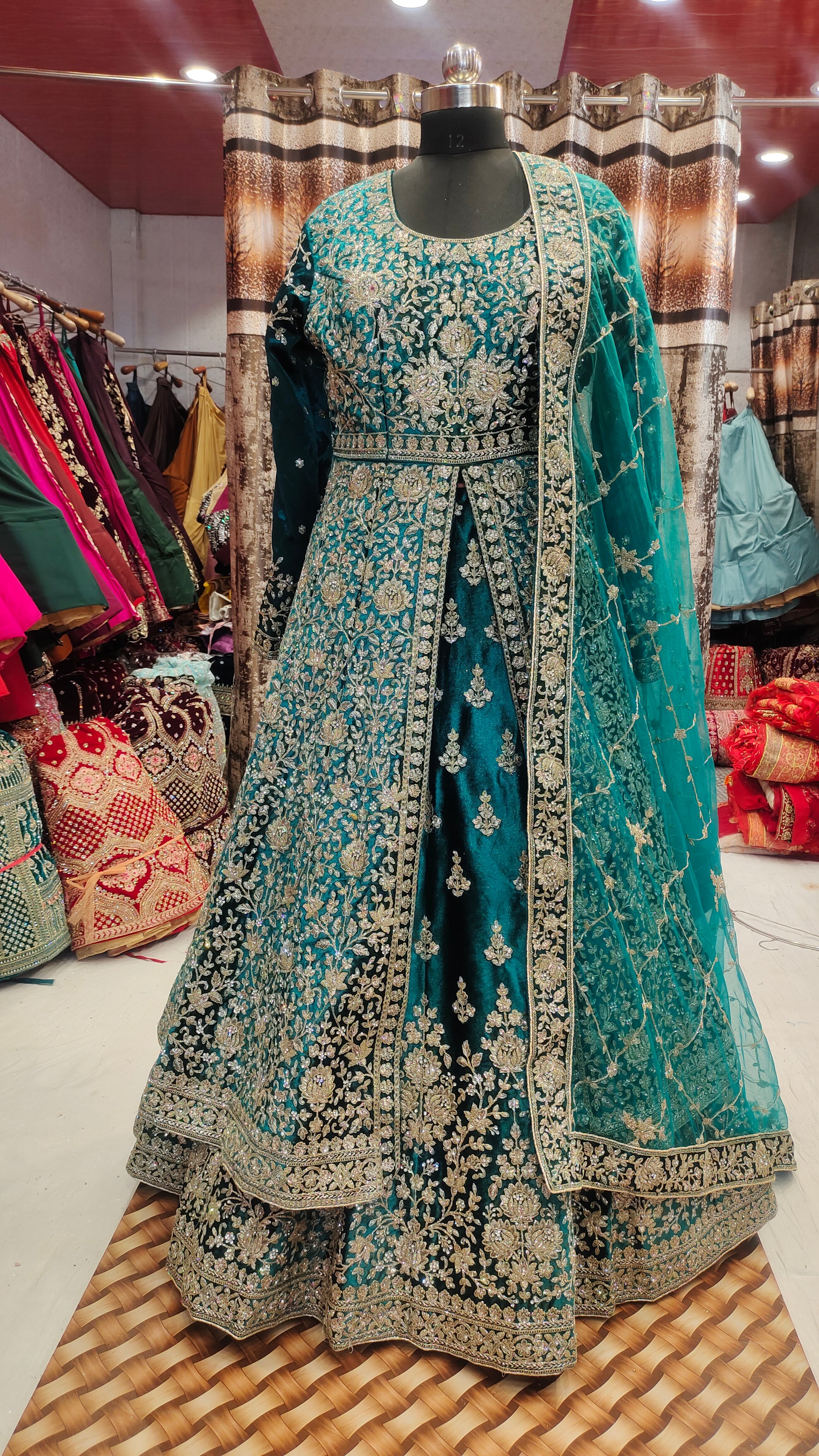 Attractive pista green peacock crop top Lehenga Happy Customer