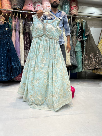 Discover elegance with our Designer Gown Collection, perfect for every special occasion. These free-size gowns are Designed to enhance your wardrobe, gown features intricate embroidery, luxurious fabrics, and a flattering silhouette, making it an ideal choice for weddings, cocktail parties, receptions, and festive celebrations.