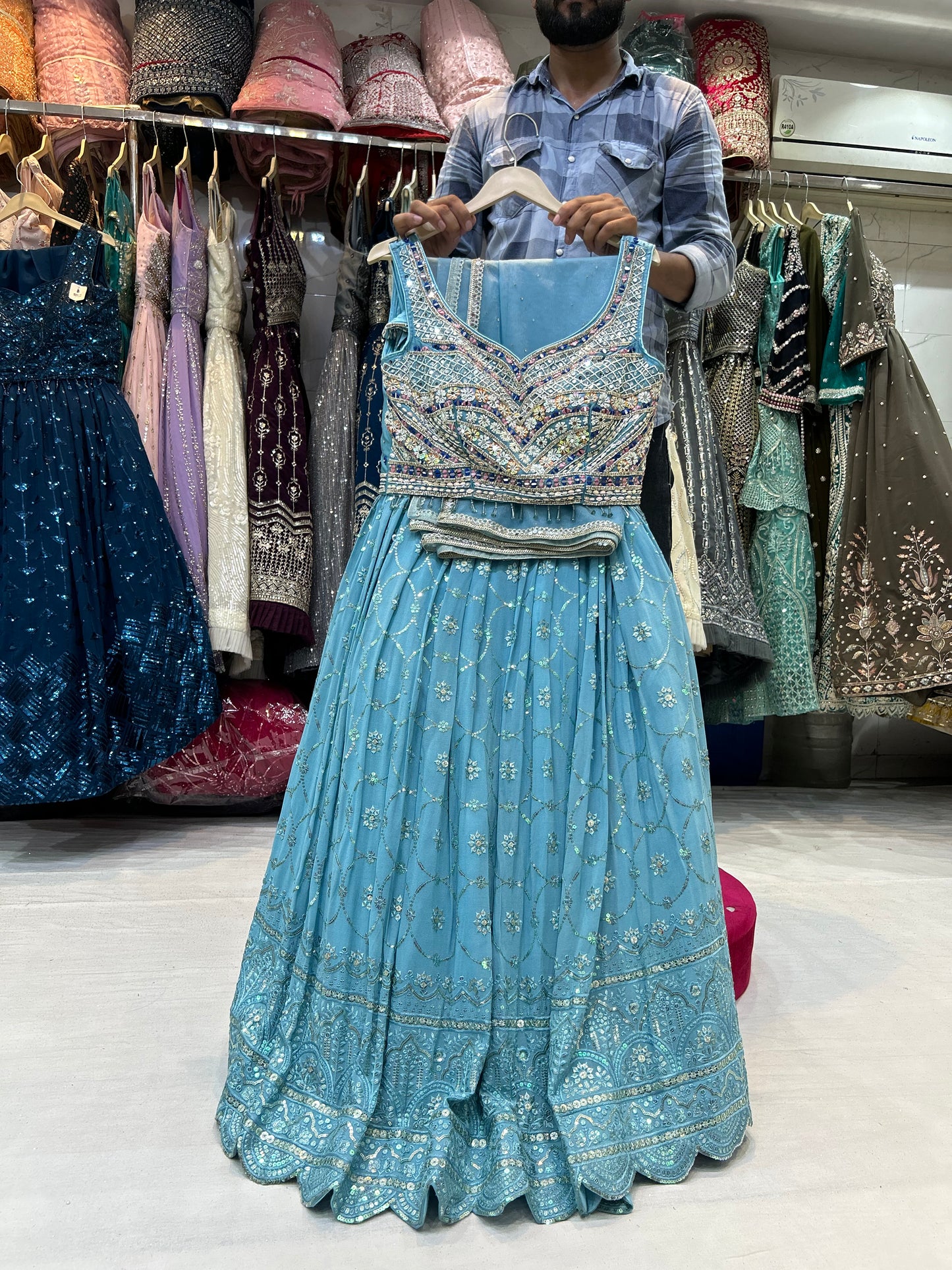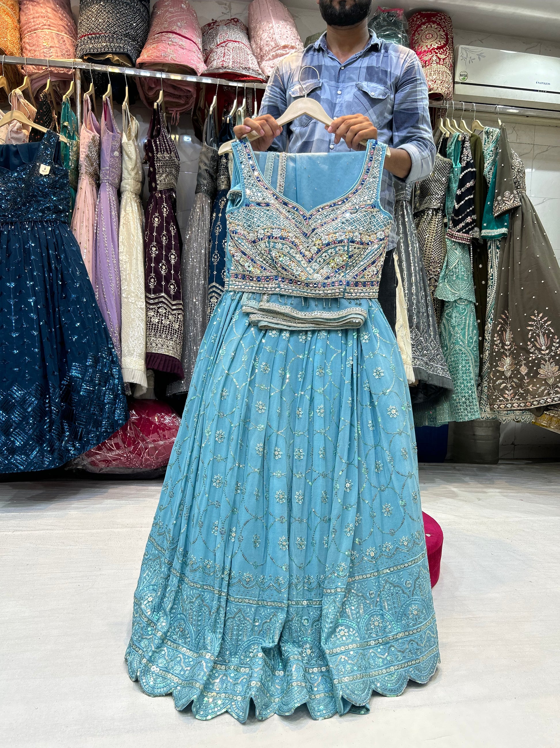 - ₹25,000 – ₹50,000: Premium partywear lehengas with intricate craftsmanship