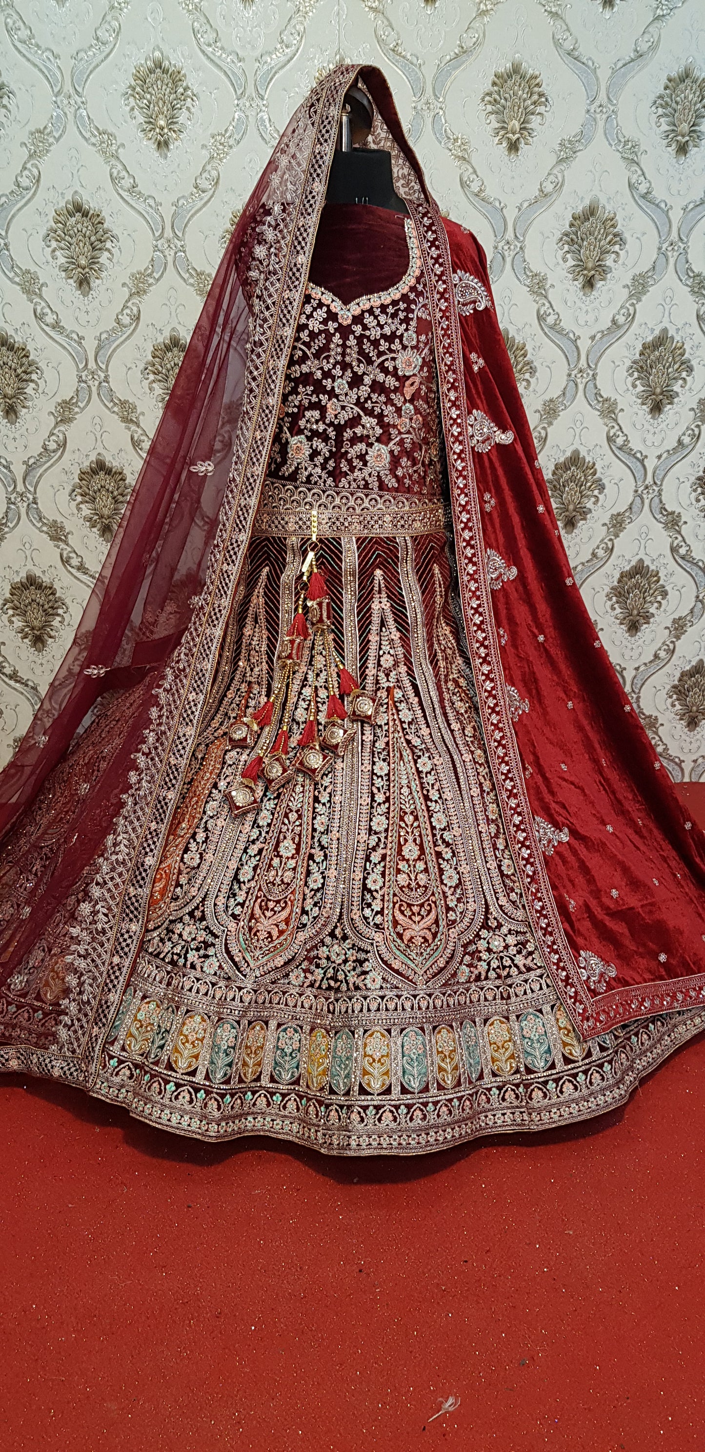 Designer jhumka Maroon bridal lehenga ( happy customer)