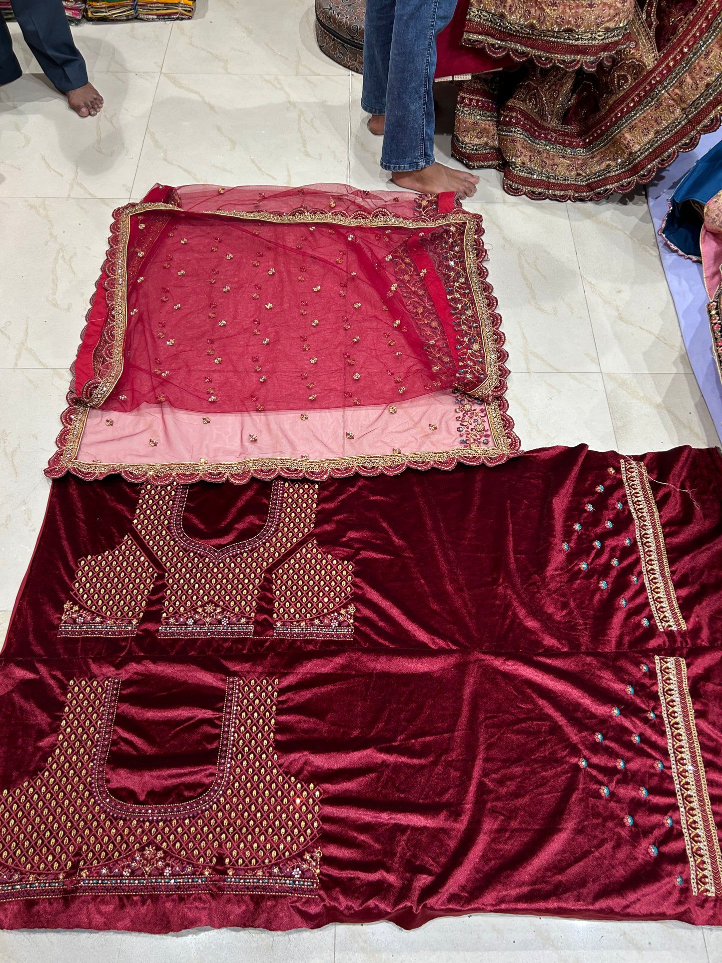 Designer jhumka Maroon bridal lehenga ( happy customer)