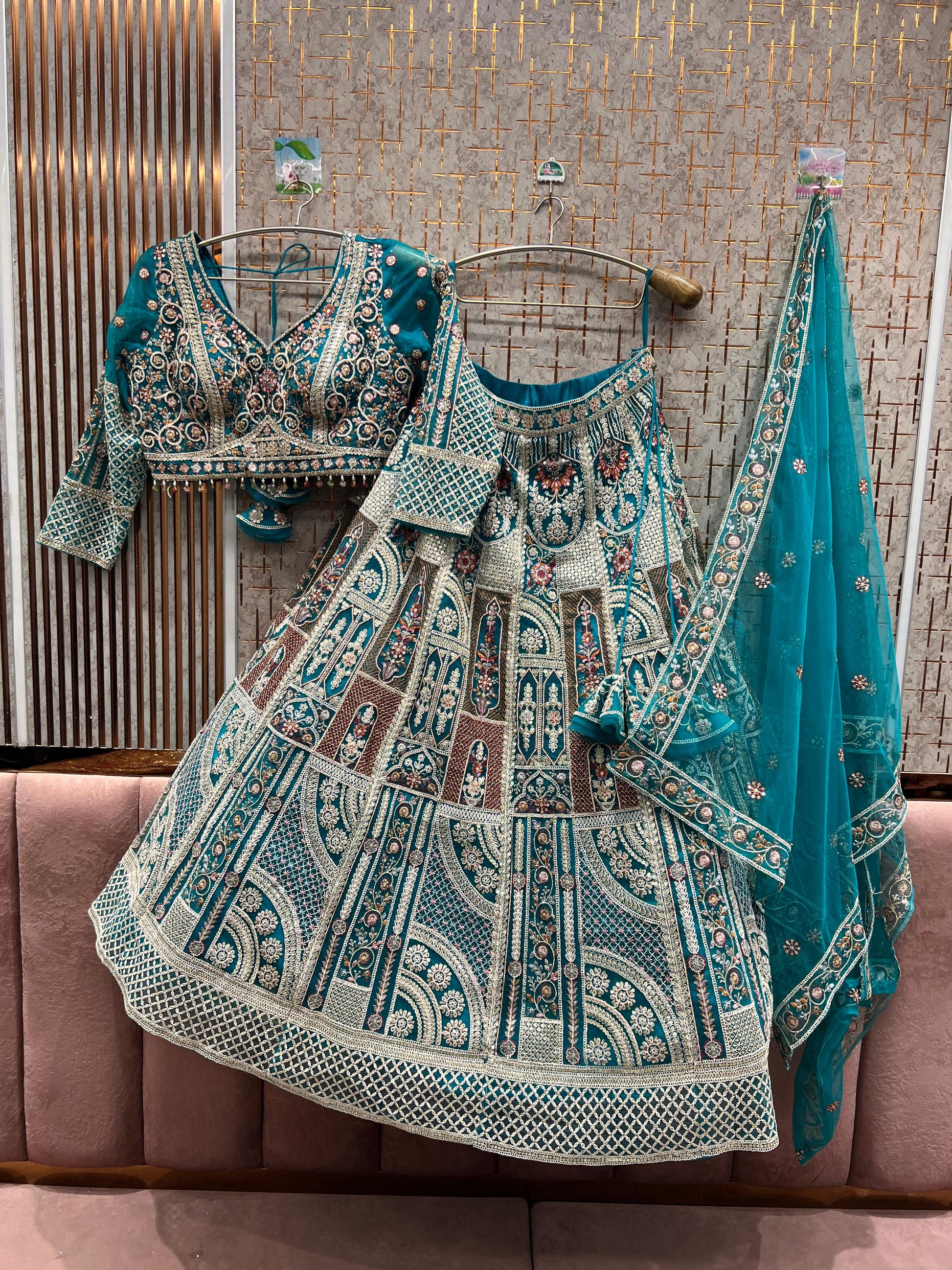 Discover elegance with our Designer Lehenga Collection, perfect for any occasion. These free-size lehengas are thoughtfully designed to accommodate all body types and can be customized to suit your unique style. Crafted to elevate your wardrobe, each lehenga set includes a semi-stitched skirt, unstitched blouse fabric (choli), and a matching chunni (dupatta), making it an ideal choice for weddings, festivals, and special celebrations.