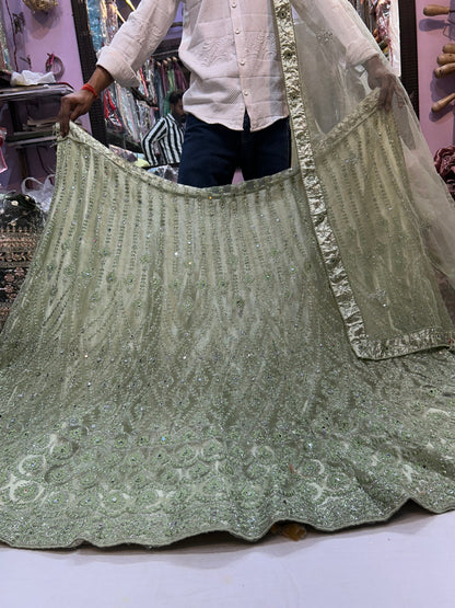 Attractive pista green peacock crop top Lehenga Happy Customer