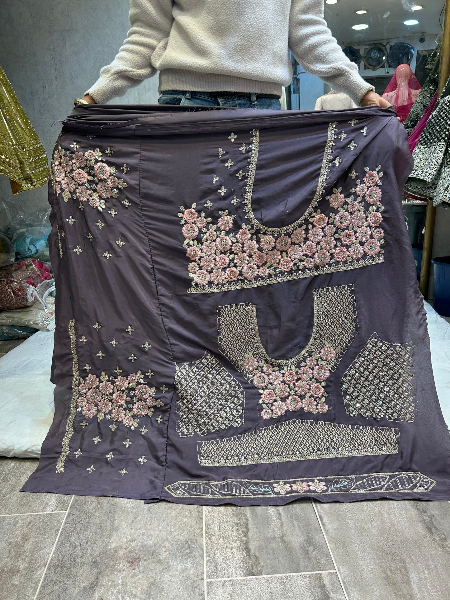 Use our custom stitching service. Submit your measurements and our skilled team will tailor the outfit to your perfect fit.