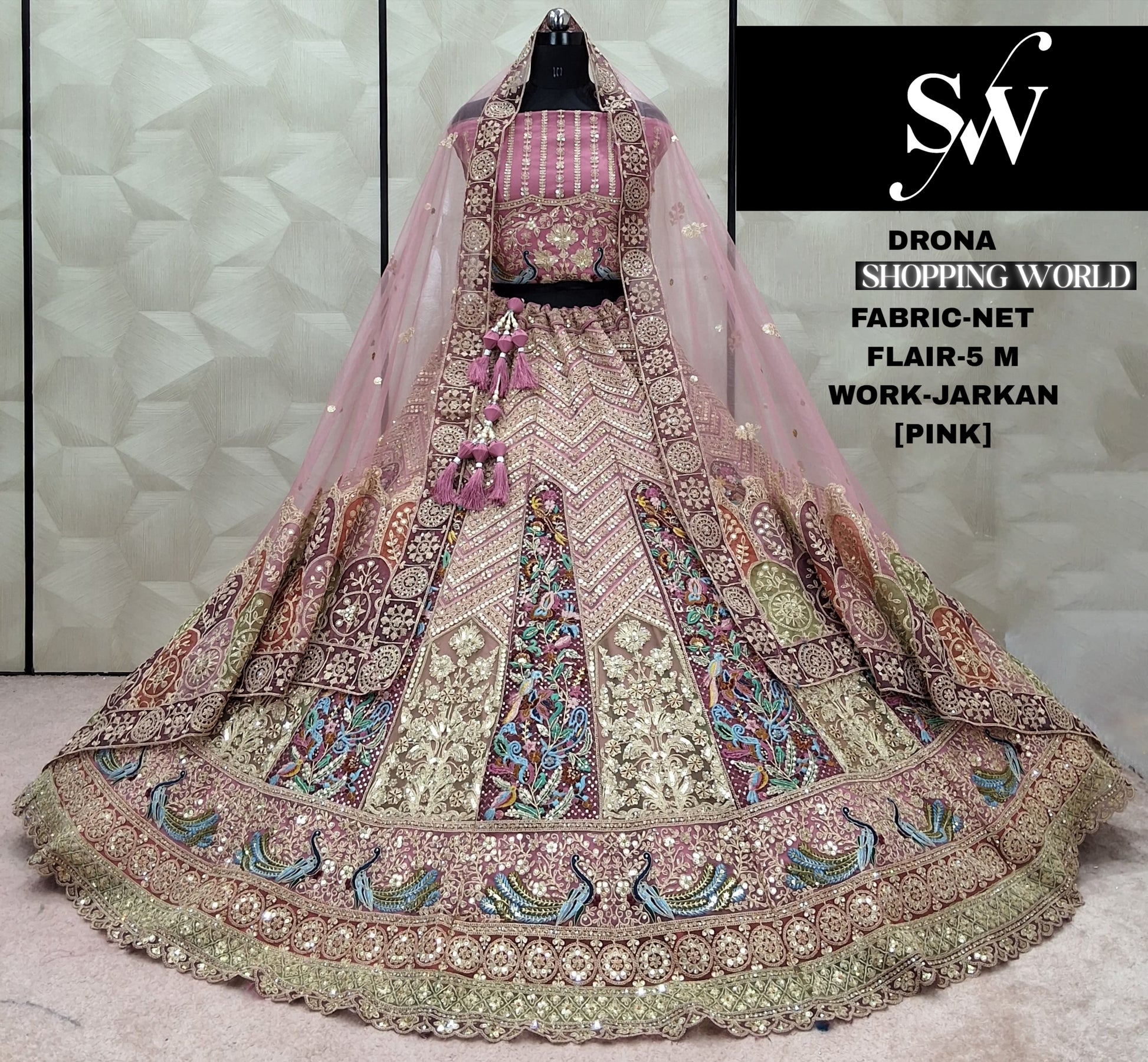 Glamorous Rani pink peacock Double dupatta Silk Bridal Lehenga happy customer