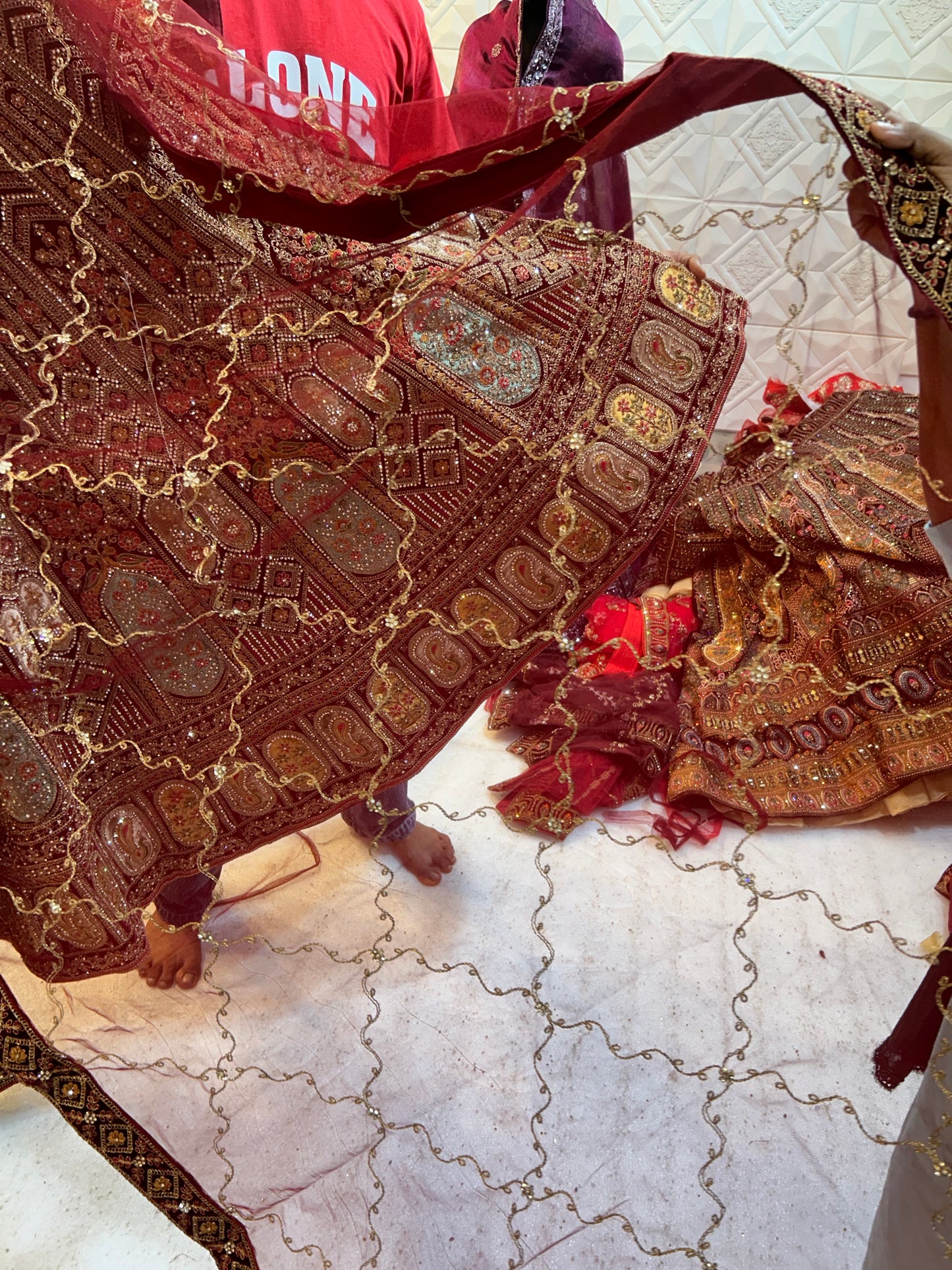 Royal Red Bridal Lehenga Double tail Dupatta with Dupatta happy customer