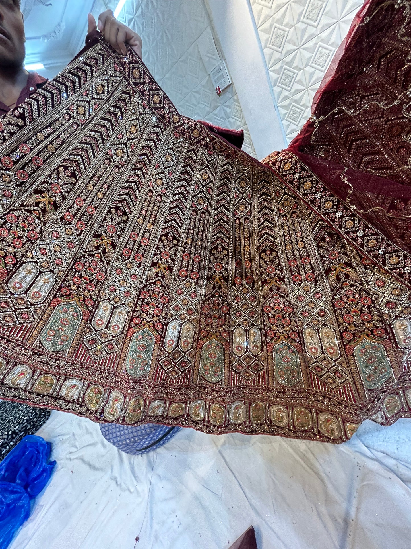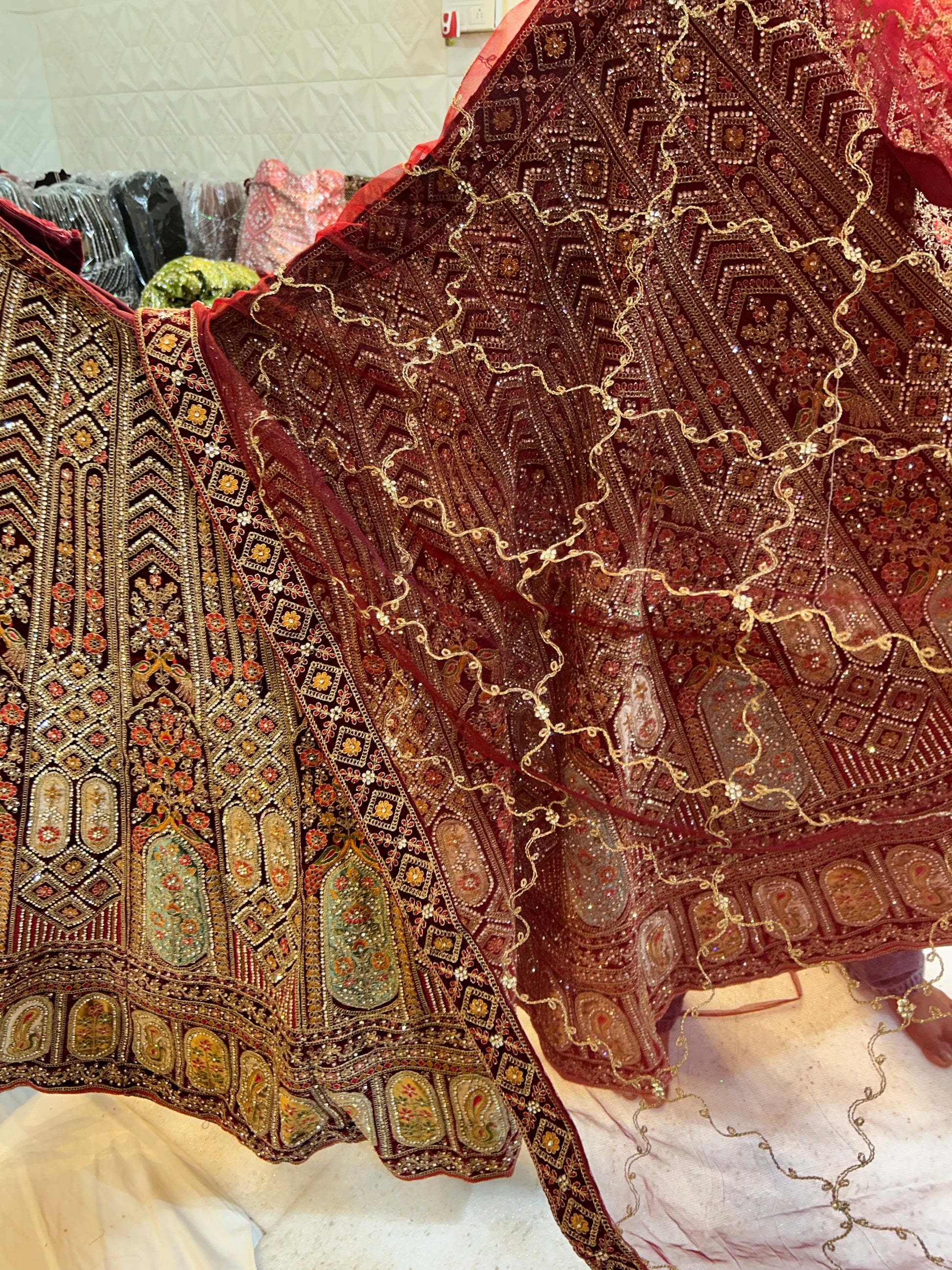 Designer jhumka Maroon bridal lehenga ( happy customer)