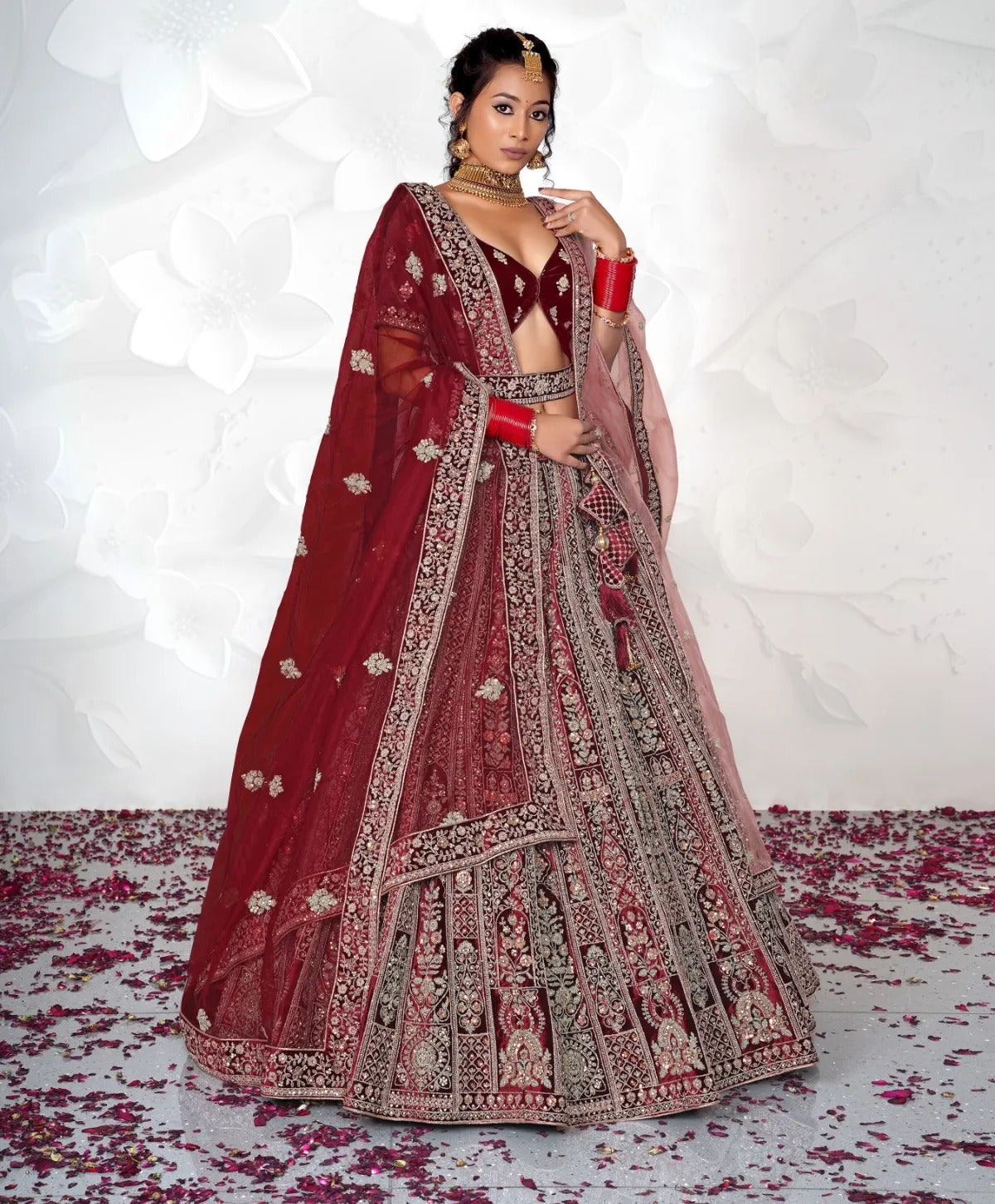 Designer jhumka Maroon bridal lehenga ( happy customer)
