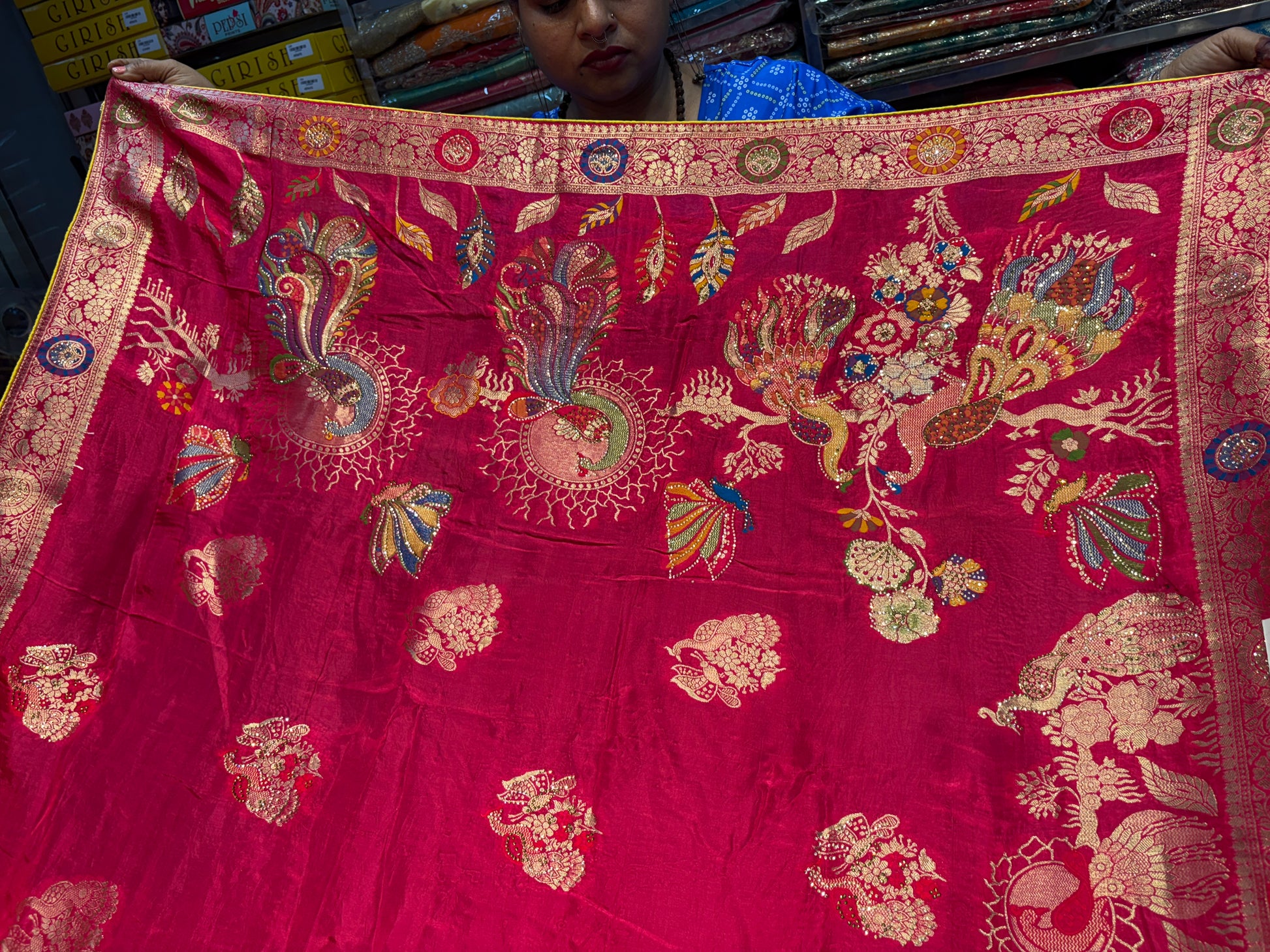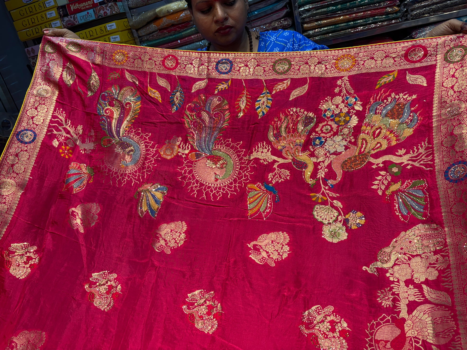 Glamorous Rani pink peacock Double dupatta Silk Bridal Lehenga happy customer