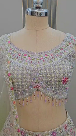 Awesome Lavender Floral Green Crop top Lehengam