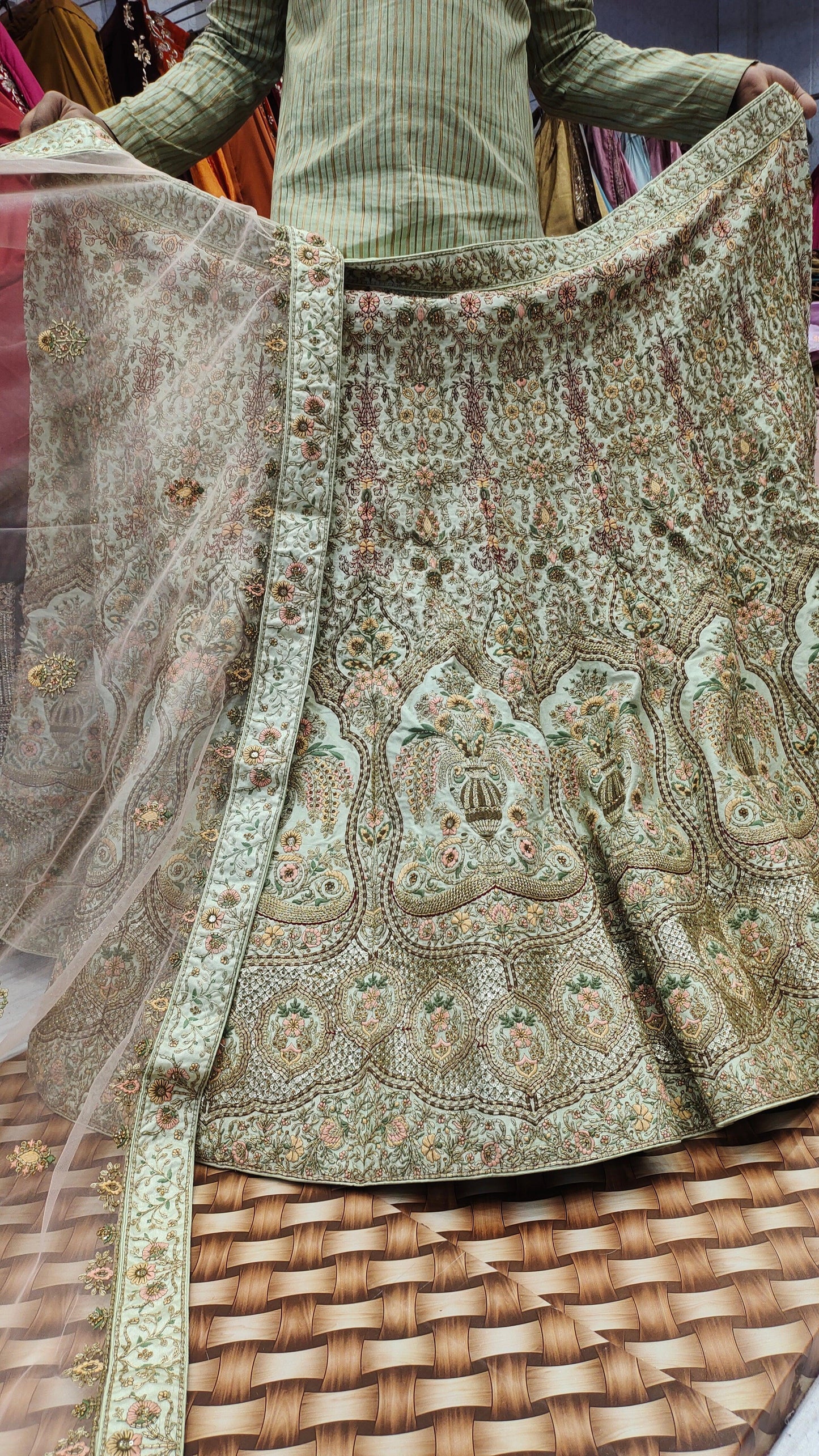 Attractive pista green peacock crop top Lehenga Happy Customer