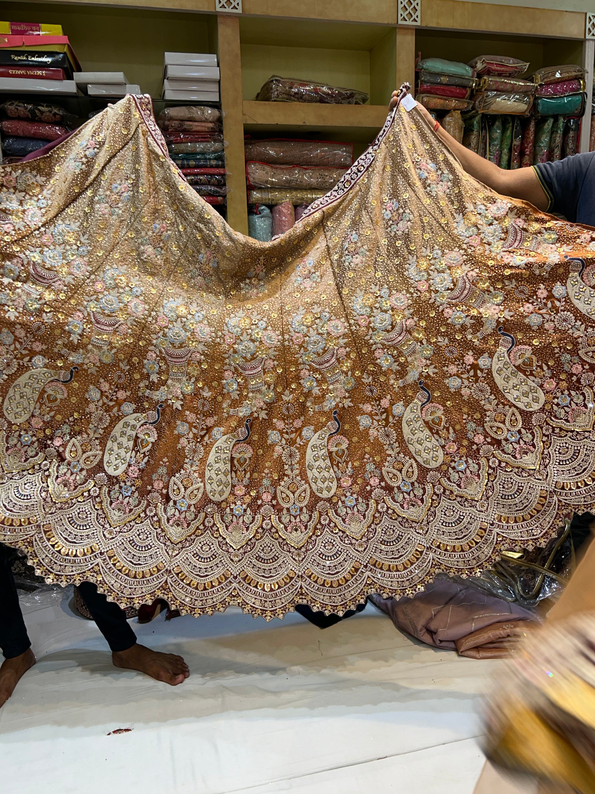 Glamorous Rani pink peacock Double dupatta Silk Bridal Lehenga happy customer