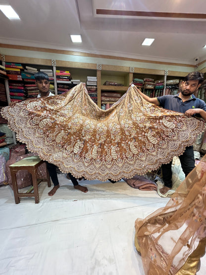 Yes, embroidery can be personalized! Add initials, traditional motifs, or custom patterns to match your wedding theme or personal style.