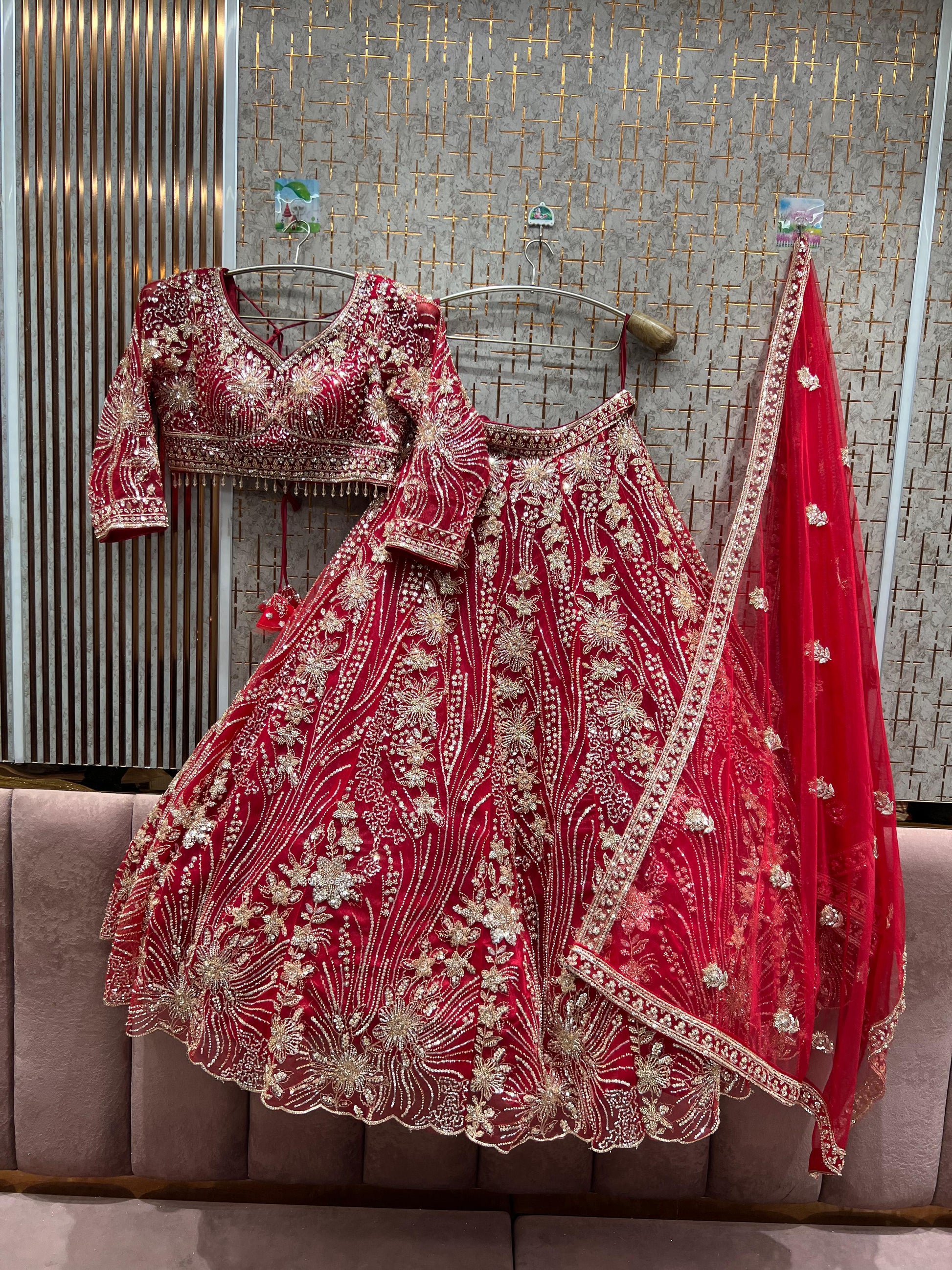 Royal Red Bridal Lehenga Double tail Dupatta with Dupatta happy customer