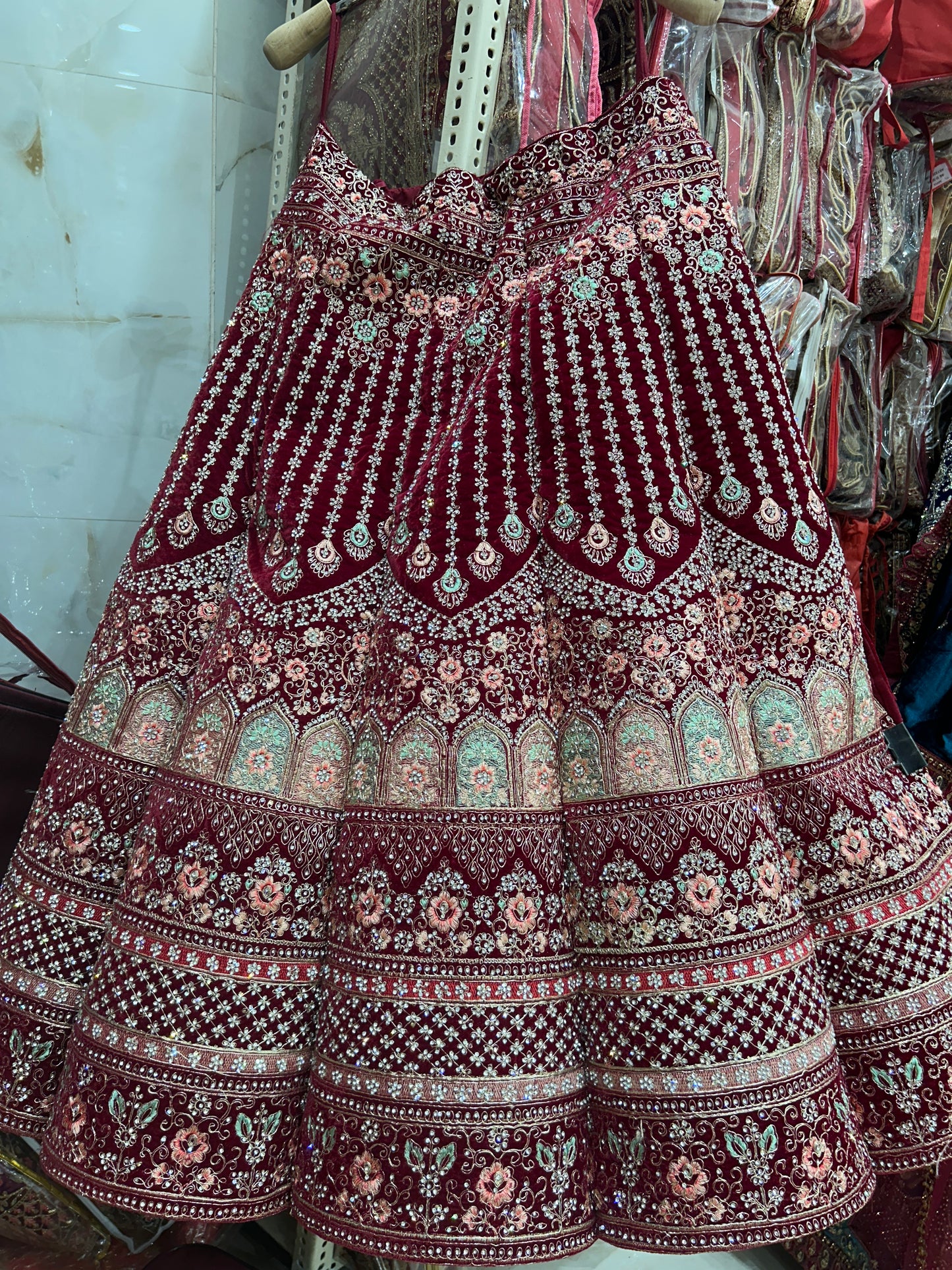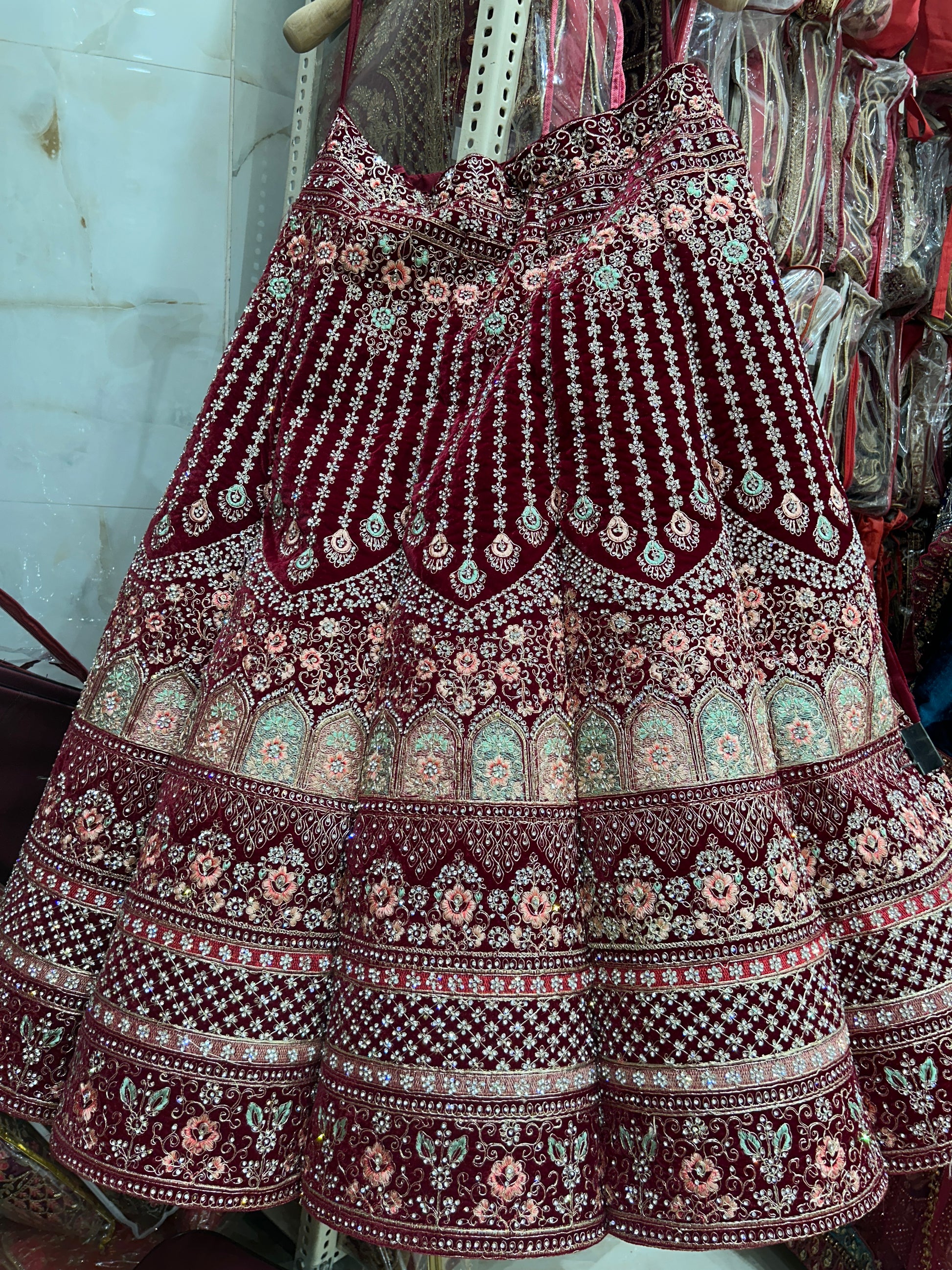 Designer jhumka Maroon bridal lehenga ( happy customer)