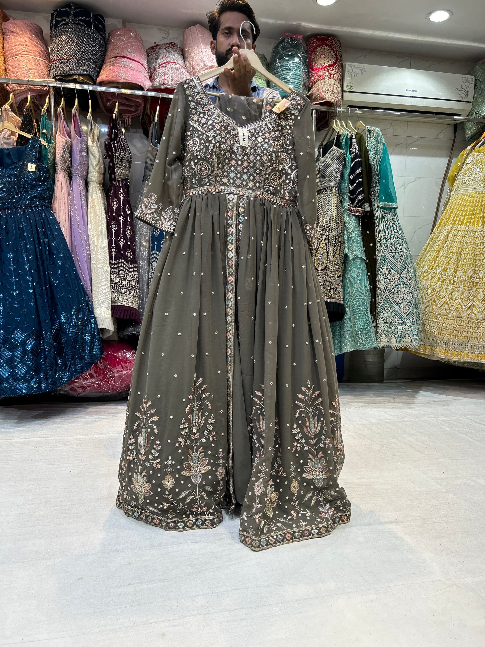 Discover elegance with our Designer Gown Collection, perfect for every special occasion. These free-size gowns are Designed to enhance your wardrobe, gown features intricate embroidery, luxurious fabrics, and a flattering silhouette, making it an ideal choice for weddings, cocktail parties, receptions, and festive celebrations.