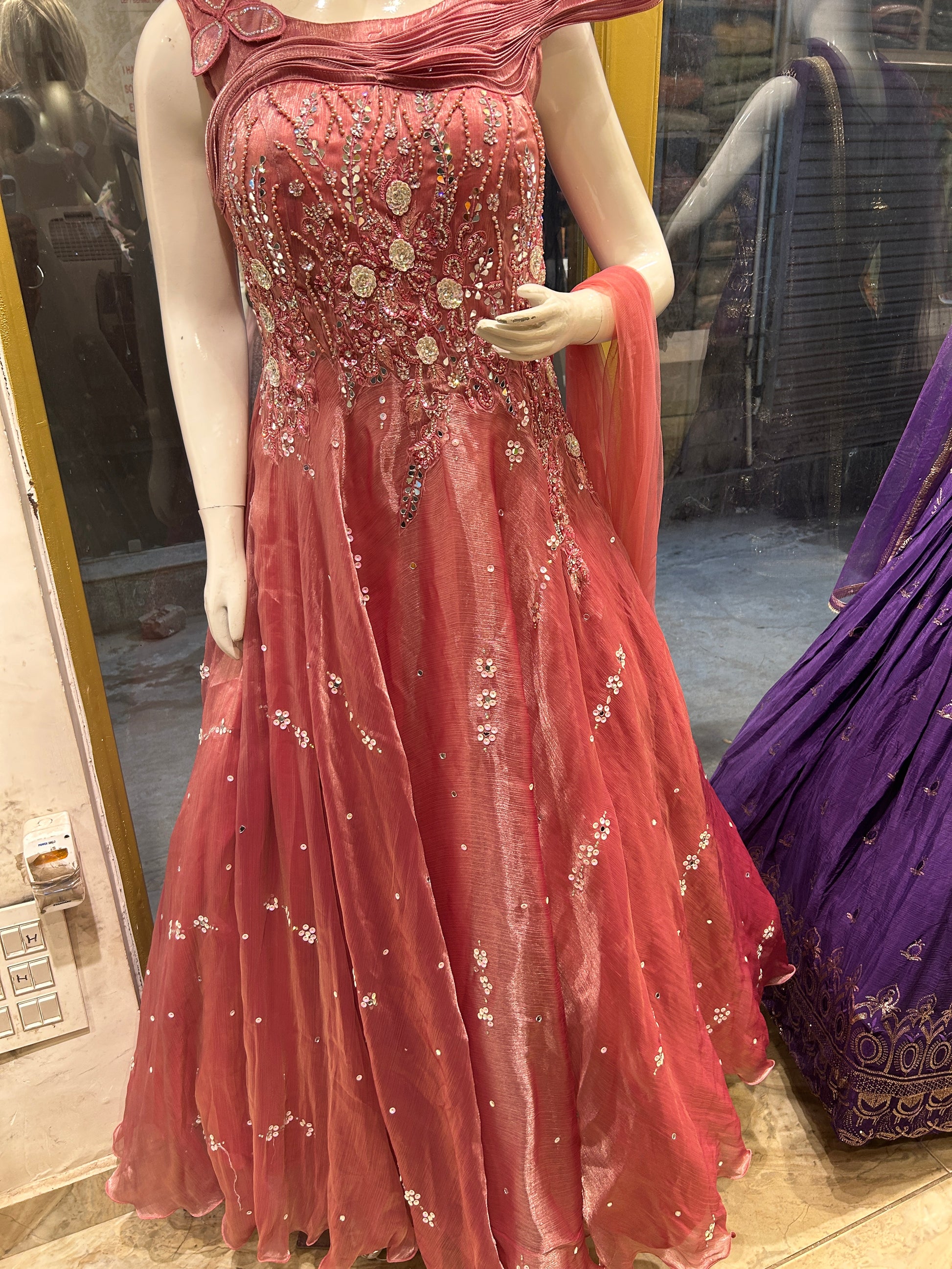 Discover elegance with our Designer Gown Collection, perfect for every special occasion. These free-size gowns are Designed to enhance your wardrobe, gown features intricate embroidery, luxurious fabrics, and a flattering silhouette, making it an ideal choice for weddings, cocktail parties, receptions, and festive celebrations.