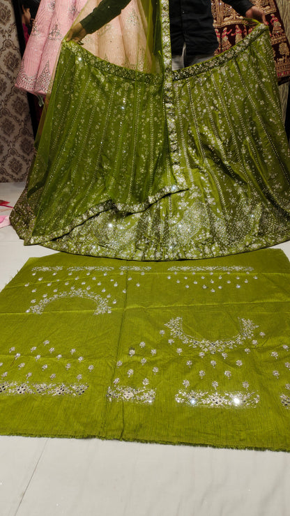 Discover elegance with our Designer Lehenga Collection, perfect for any occasion. These free-size lehengas are thoughtfully designed to accommodate all body types and can be customized to suit your unique style. Crafted to elevate your wardrobe, each lehenga set includes a semi-stitched skirt, unstitched blouse fabric (choli), and a matching chunni (dupatta), making it an ideal choice for weddings, festivals, and special celebrations.