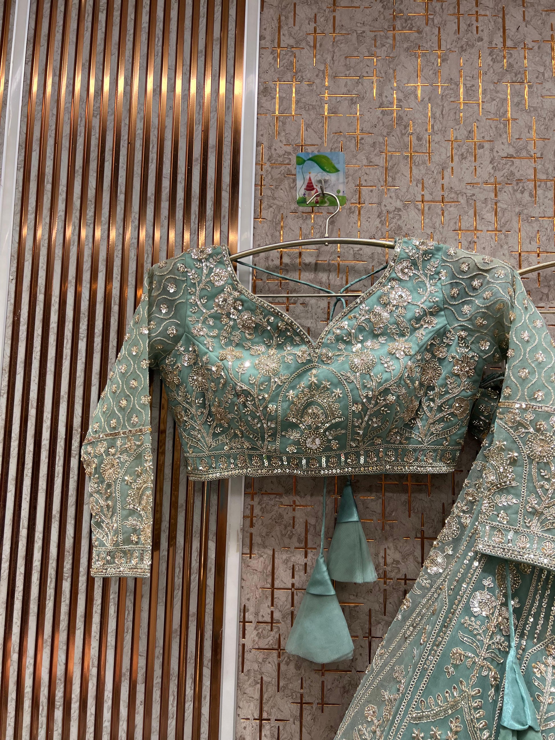Attractive pista green peacock crop top Lehenga Happy Customer