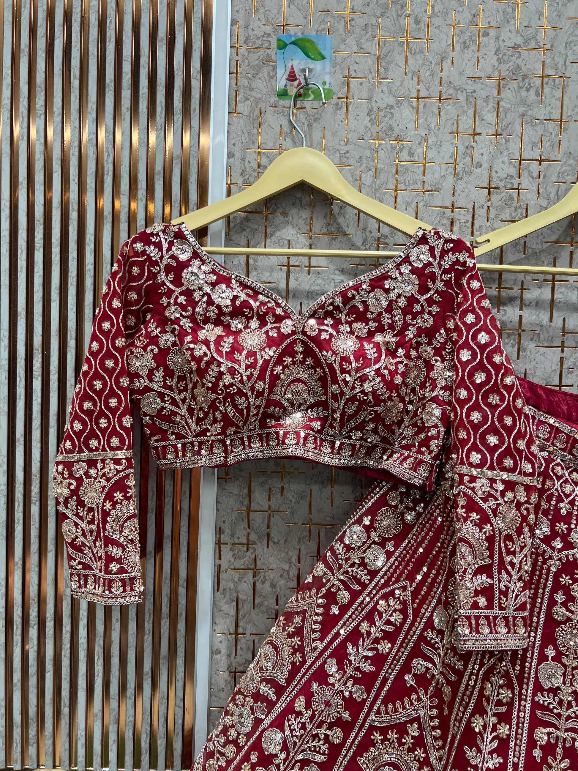 Designer jhumka Maroon bridal lehenga ( happy customer)
