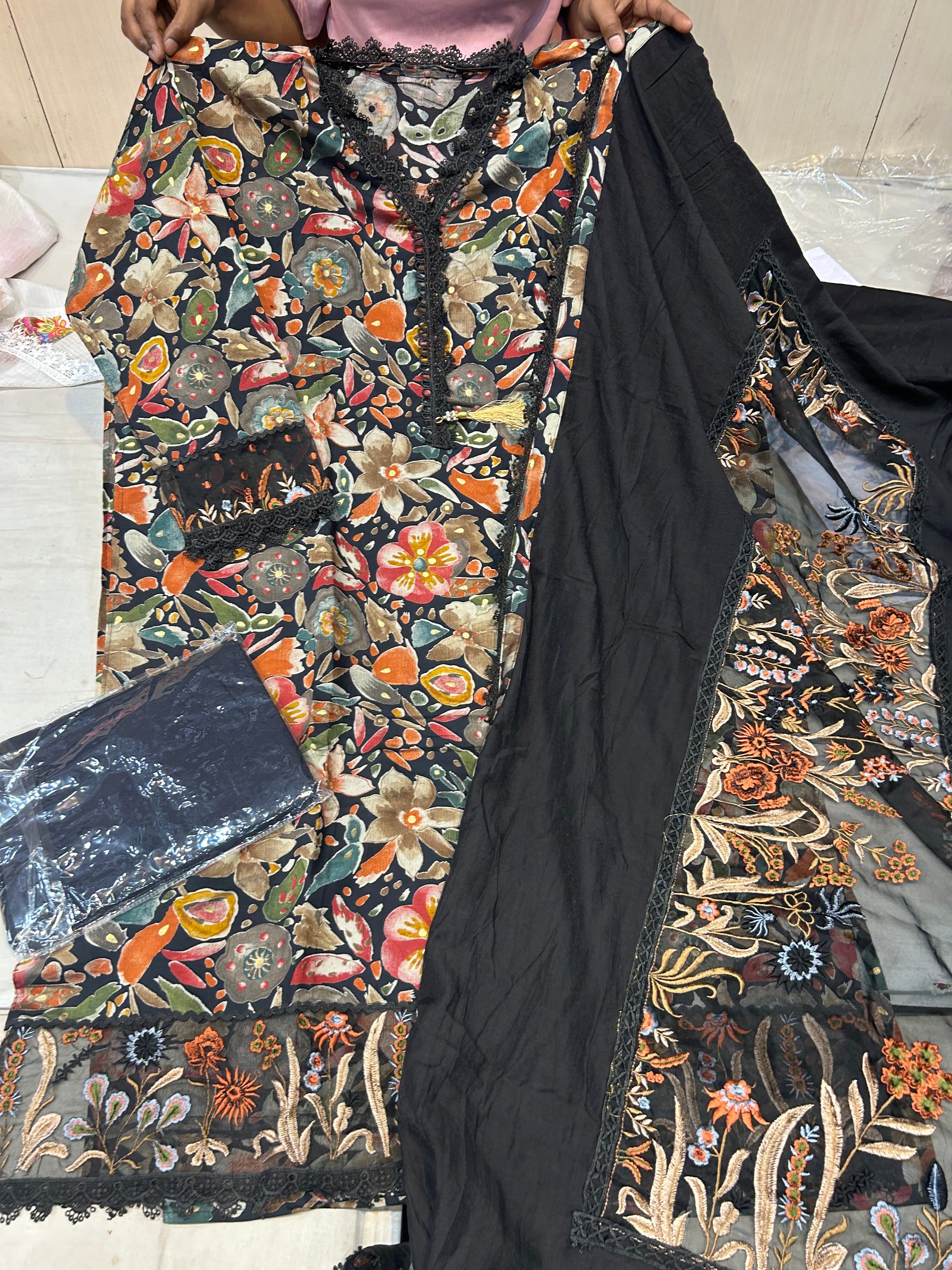 Black Designer Unstitched Suit 😍