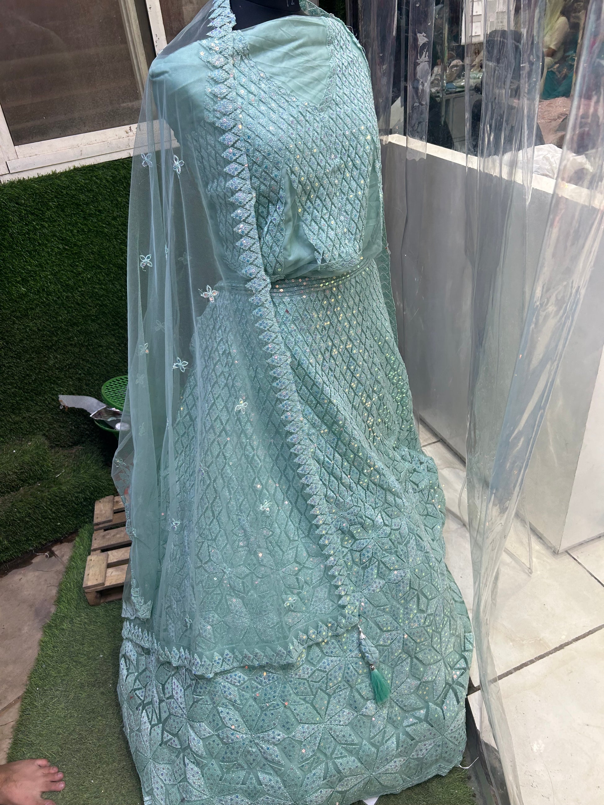 Attractive pista green peacock crop top Lehenga Happy Customer