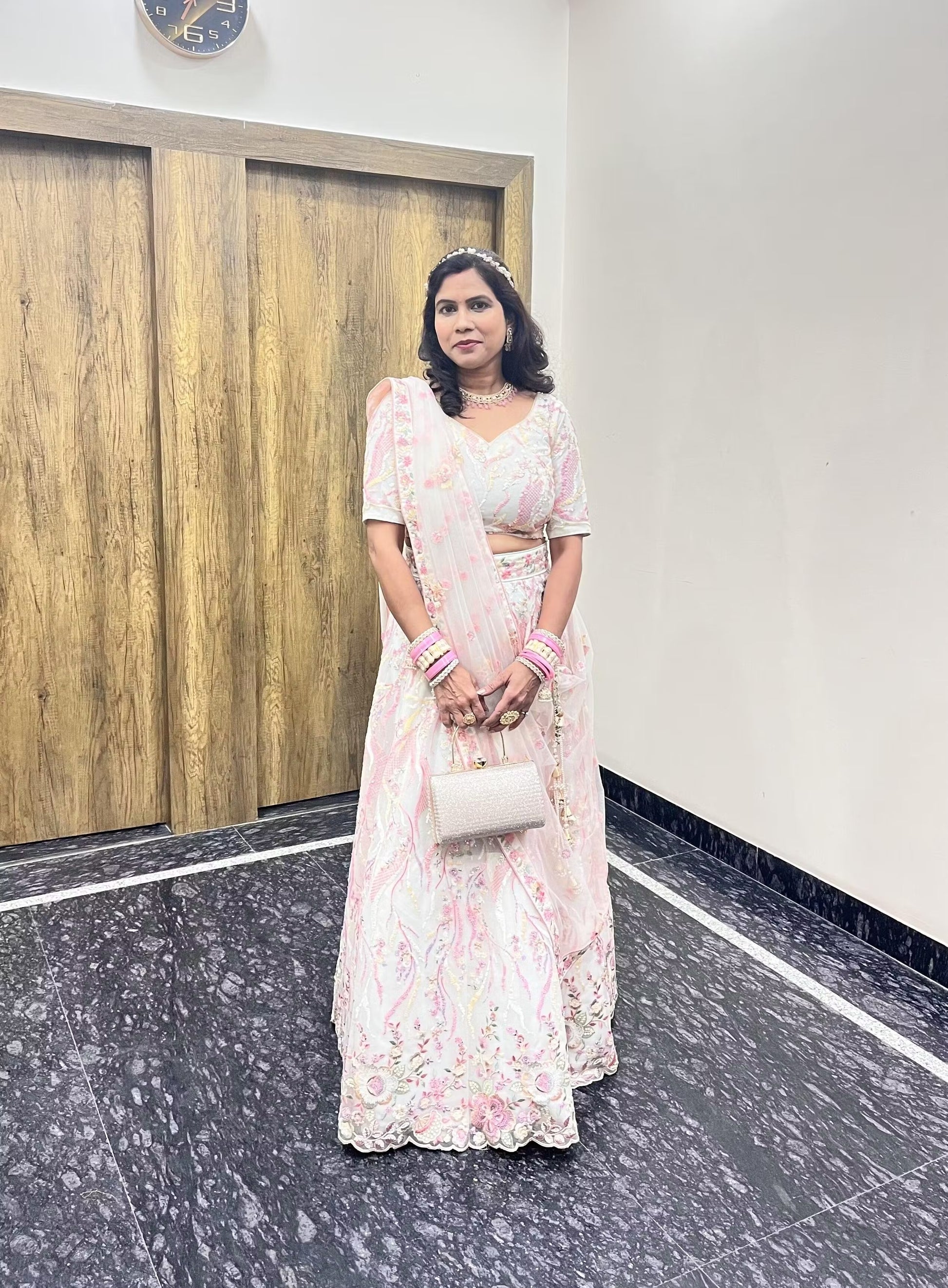 Glamorous Rani pink peacock Double dupatta Silk Bridal Lehenga happy customer