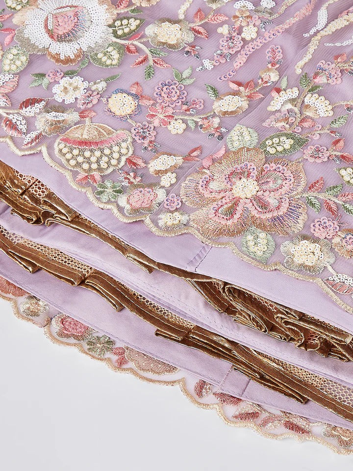 In 2025, pastel tones, floral embroidery, mirror work, and Indo-fusion layers are trending, often paired with coordinated safas and mojris