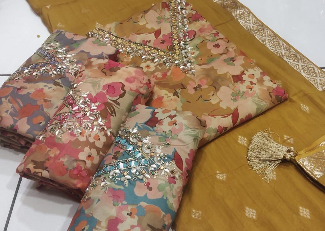 Charming mustard Unstitched suit ( free size )