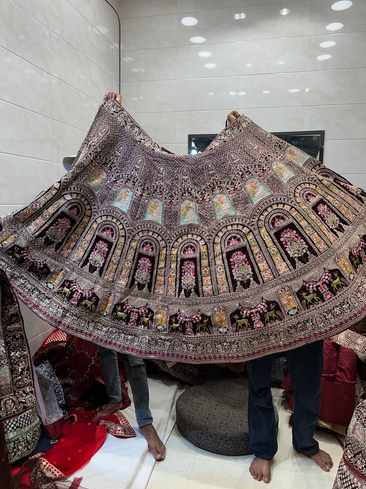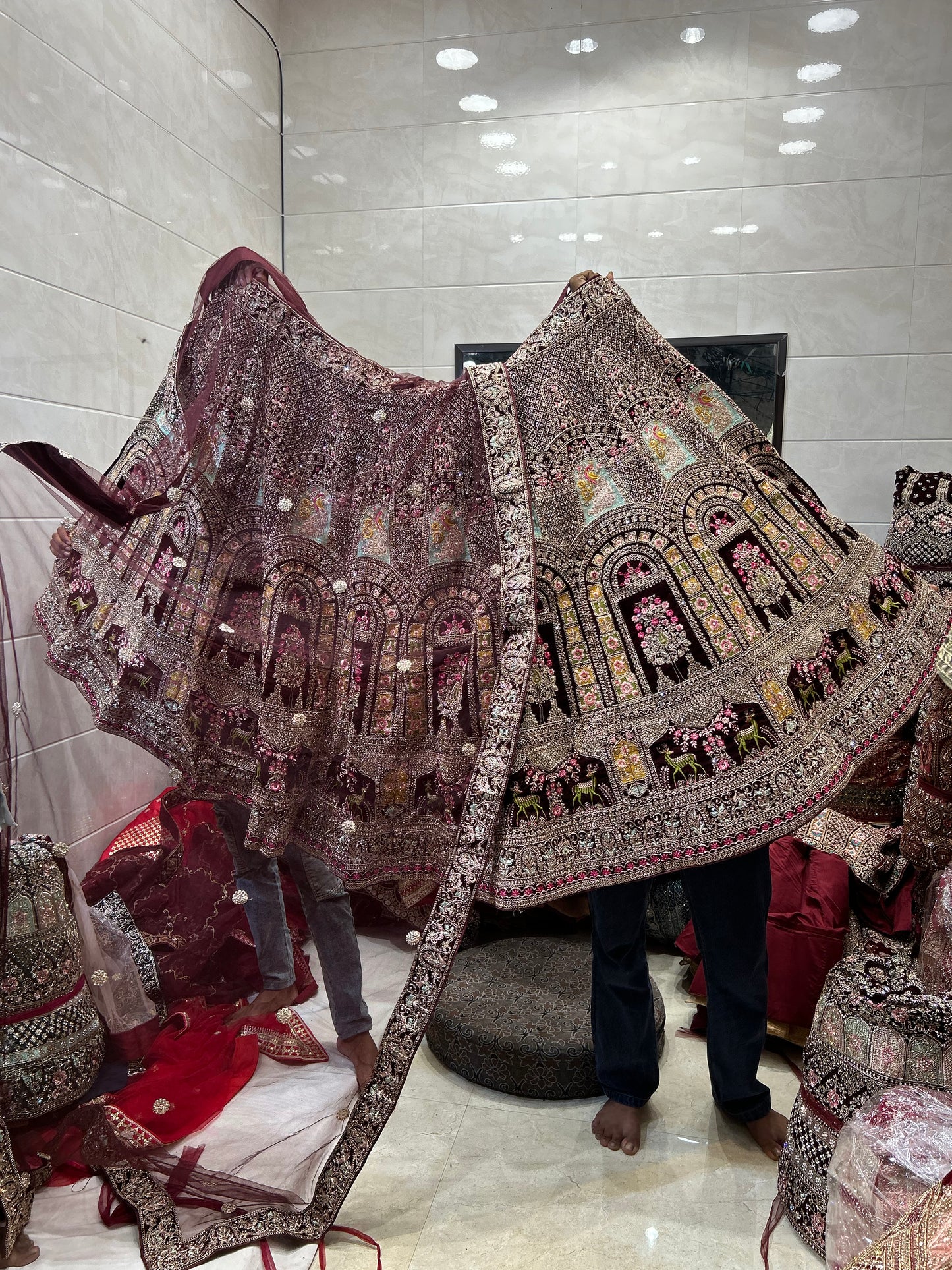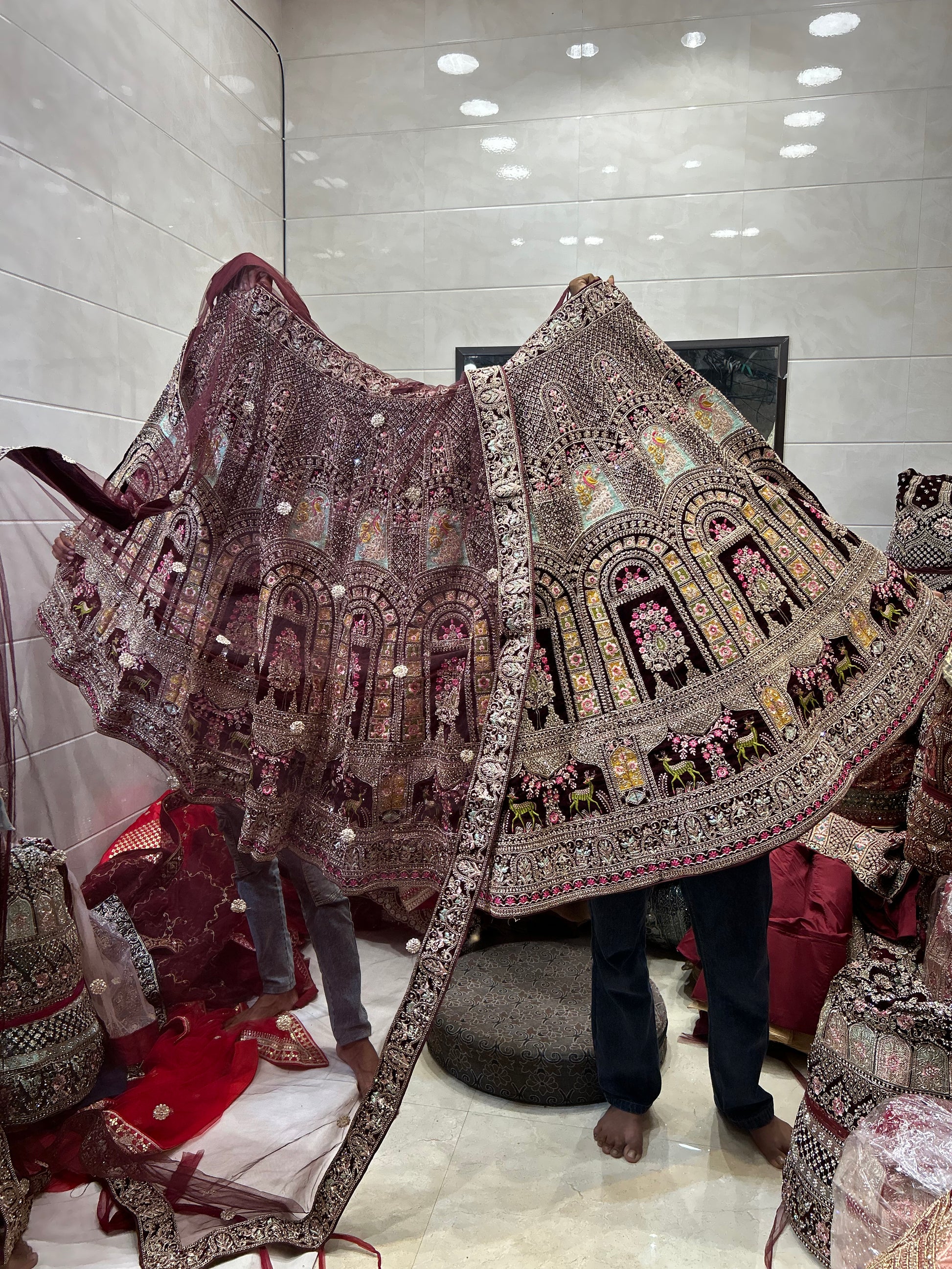 Designer jhumka Maroon bridal lehenga ( happy customer)