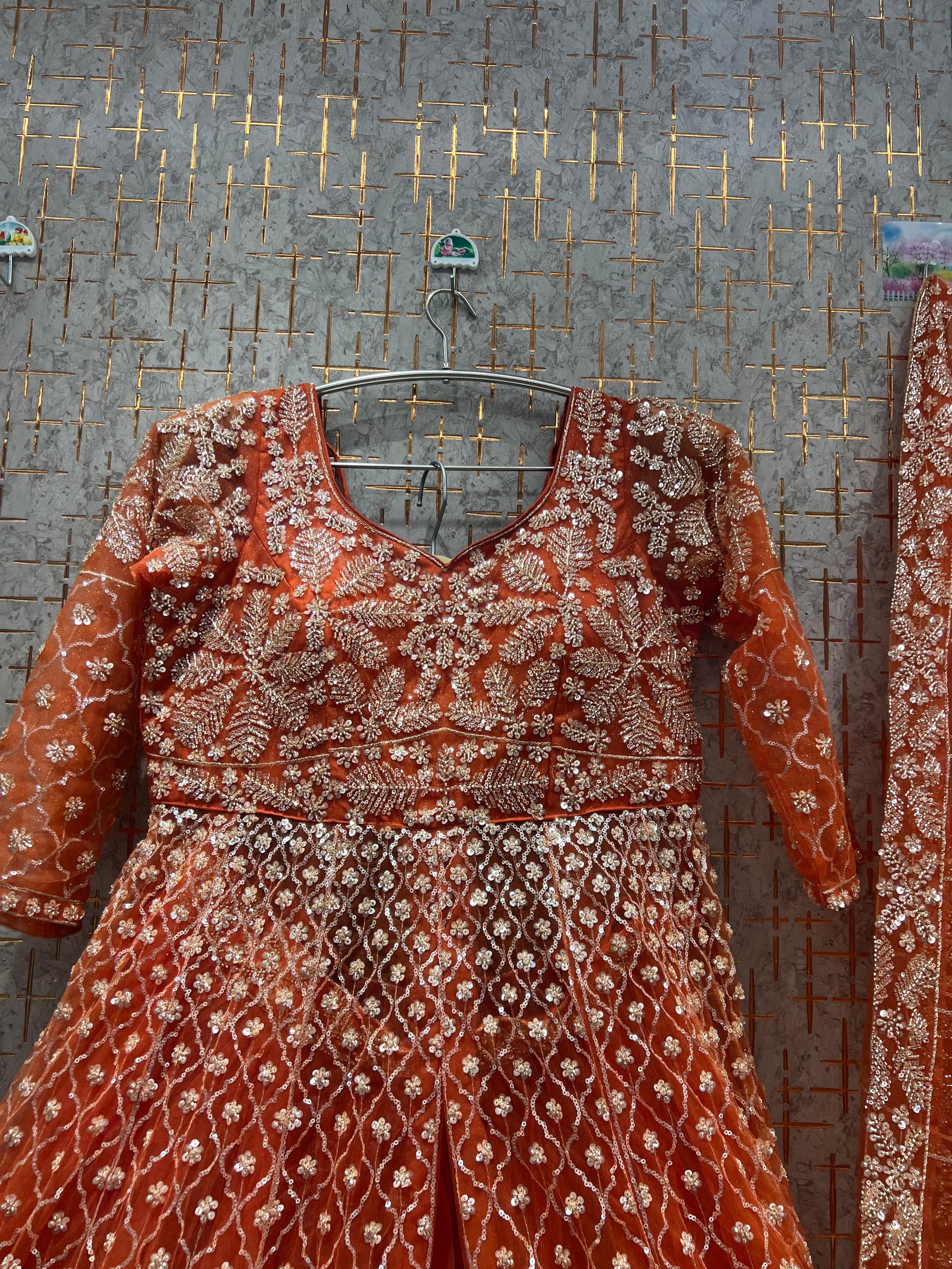Charming Rust orange long peplum Dress Farshi Gaharara Dress Special