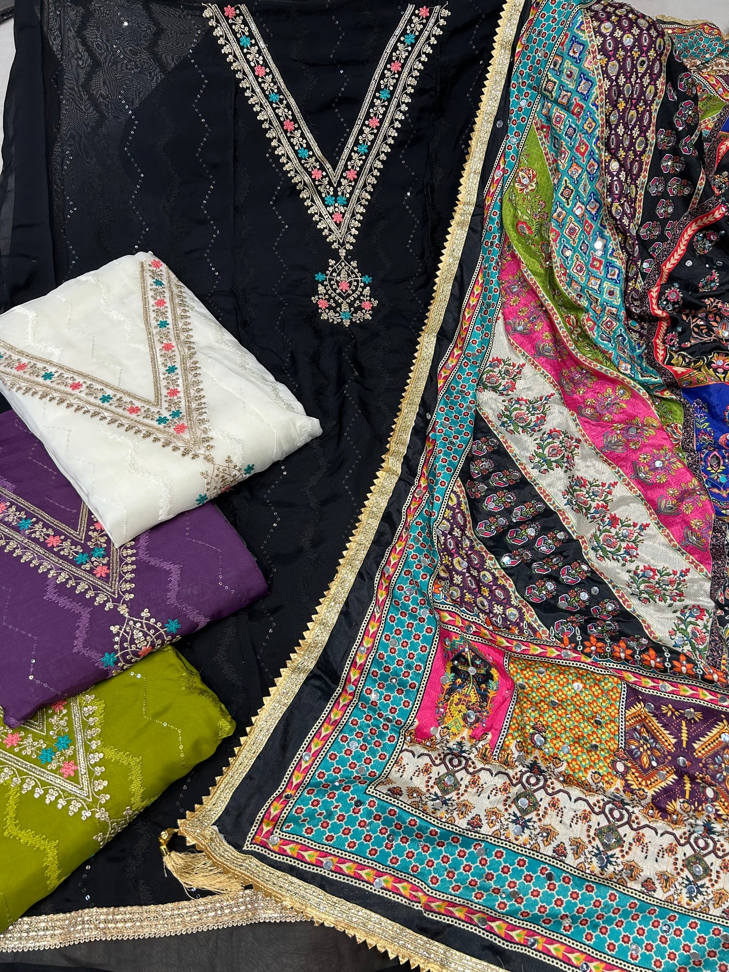 ✔ Intricate Designs: Hand embroidery, zari, sequins, mirror work, digital prints, and churidar materials for a flawless look.