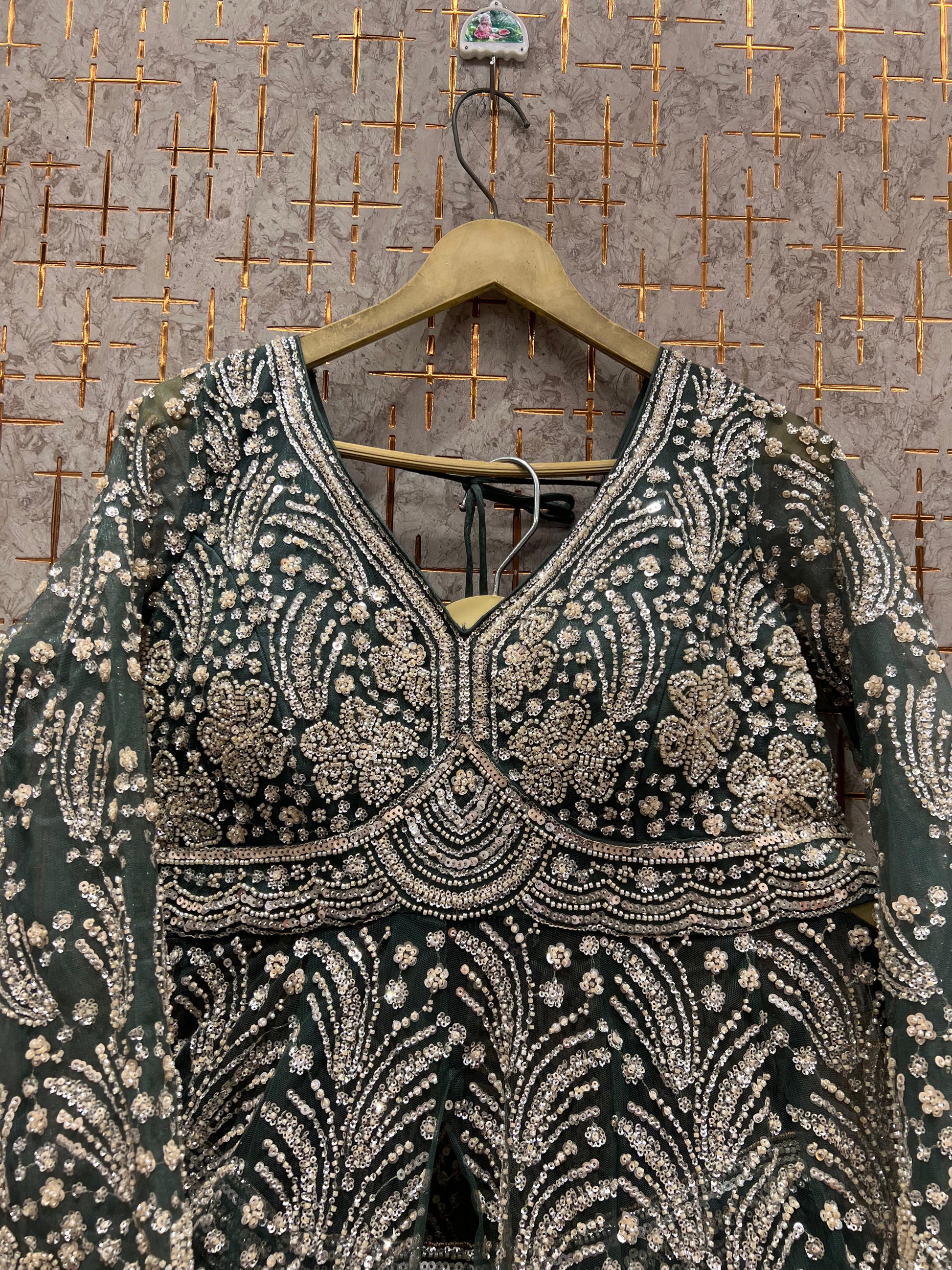 Dark green Farshi garara muslim Bride Long Indo Dress