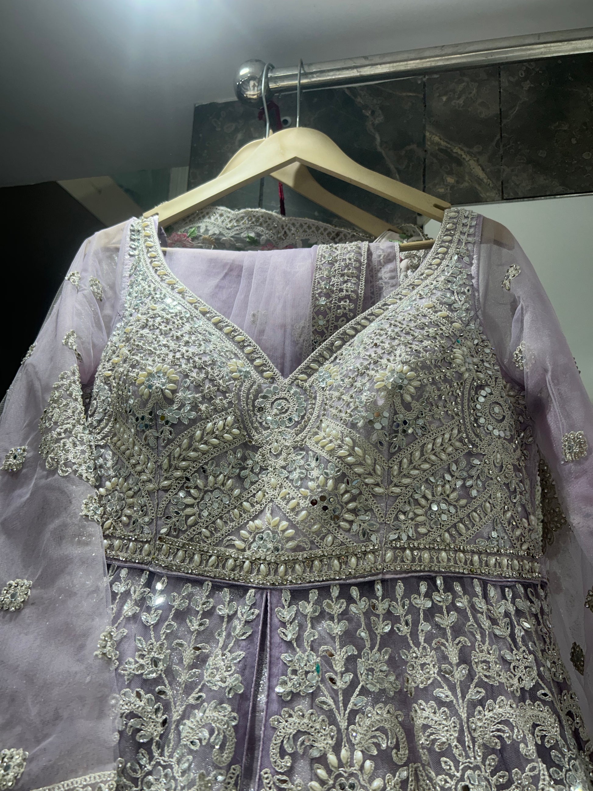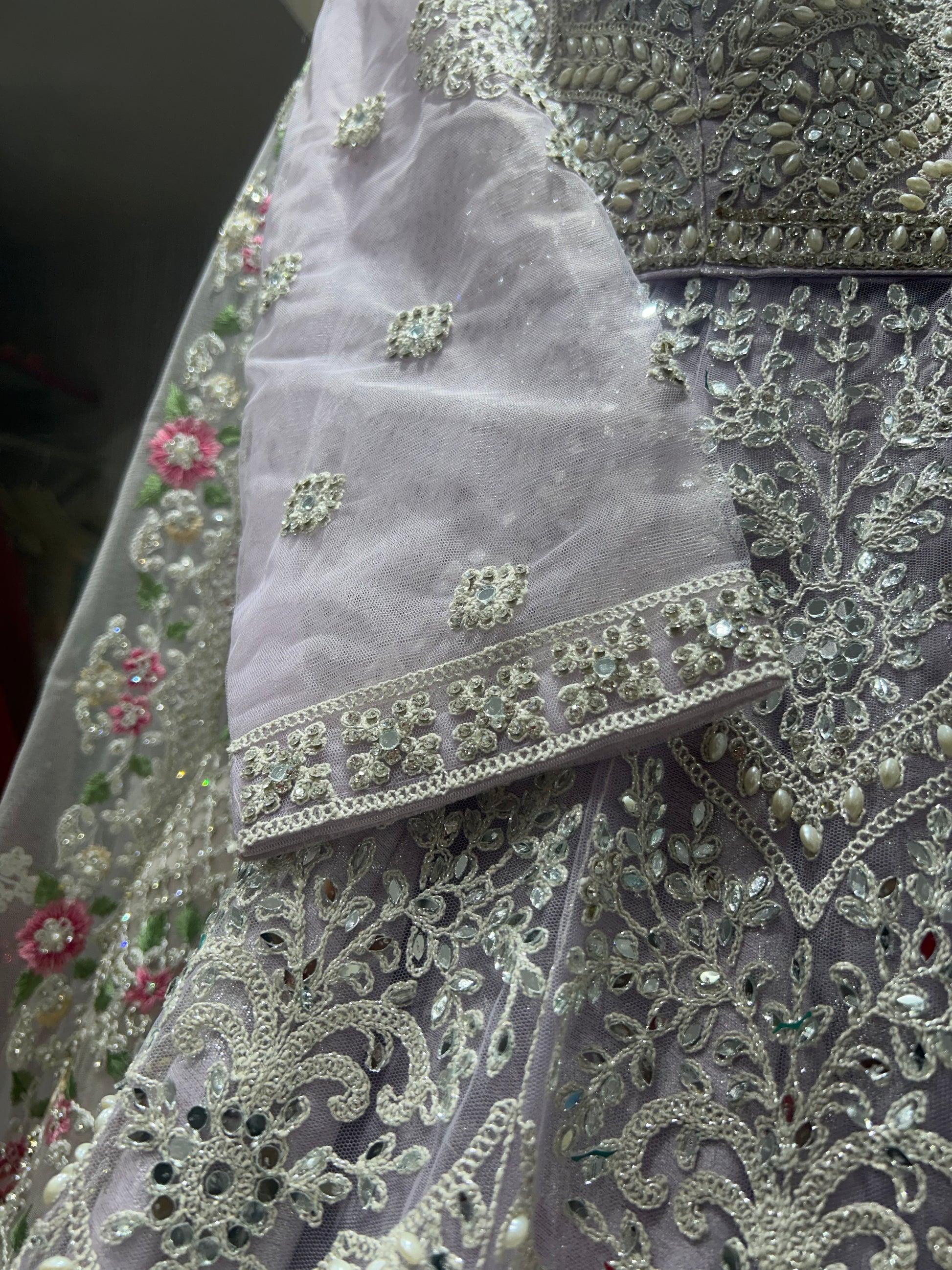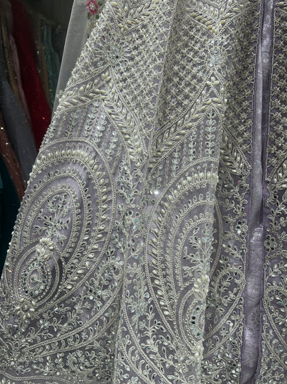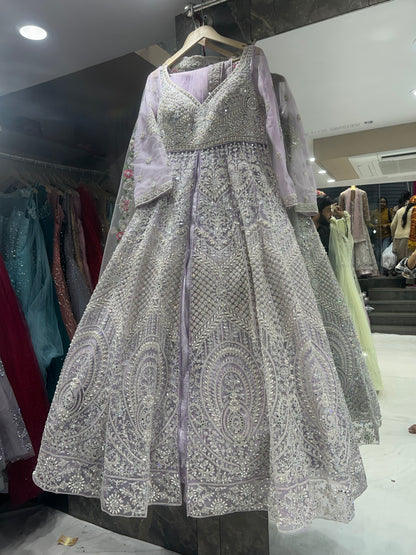 Decent heavy pink lavender long crop top lehenga dress