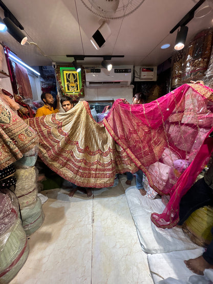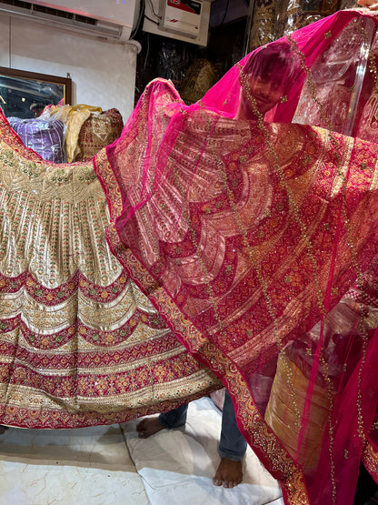 Glamorous Rani pink peacock Double dupatta Silk Bridal Lehenga happy customer