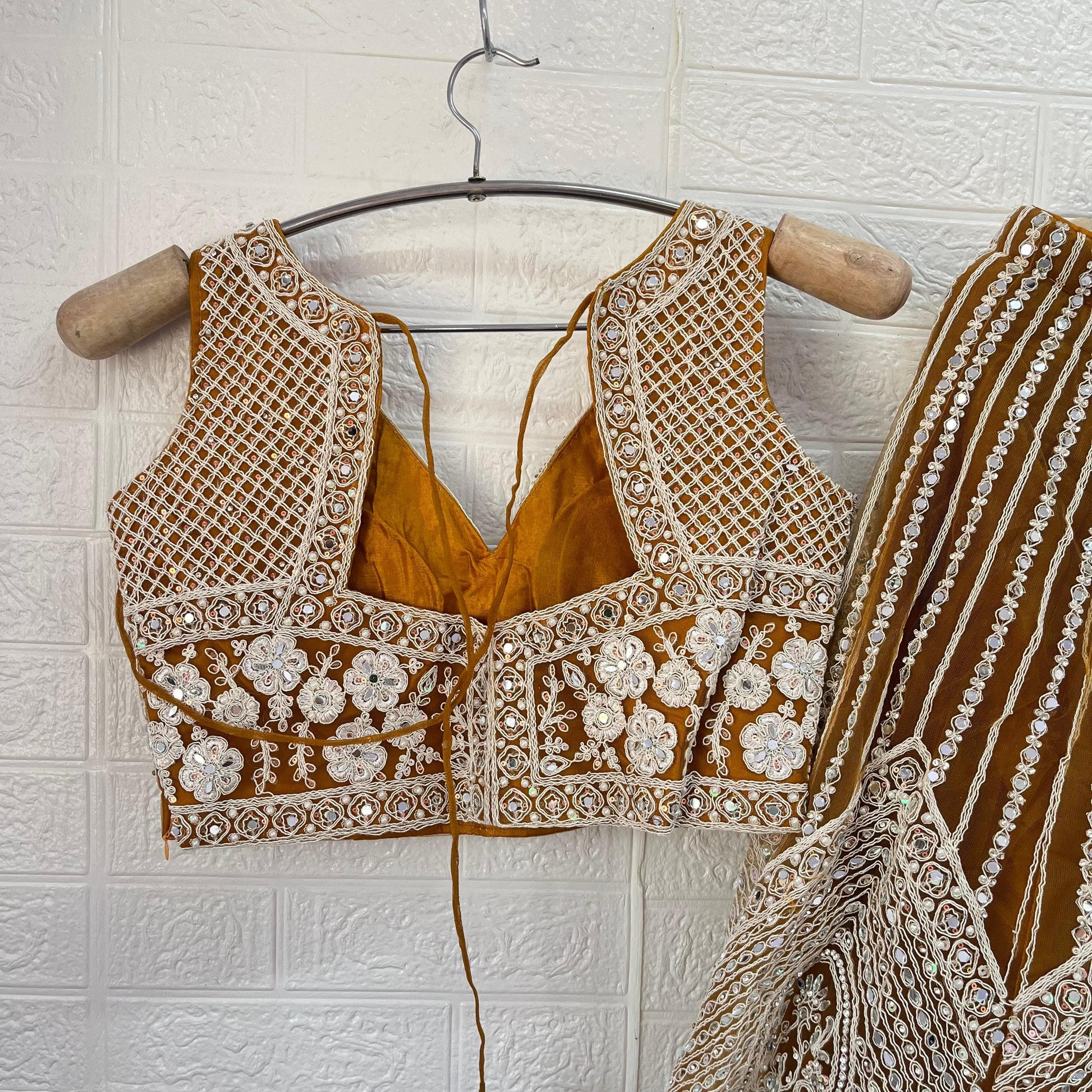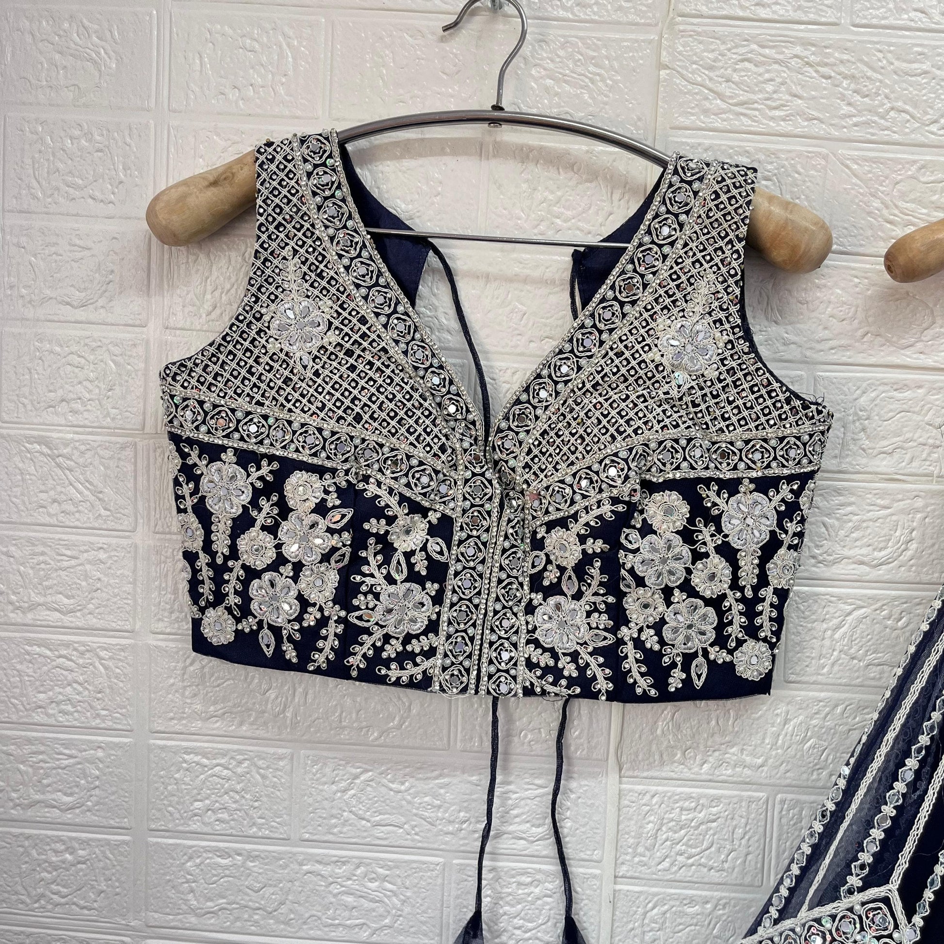 Designer Golden yellow Dark blue Ready to wear Crop Top Lehenga