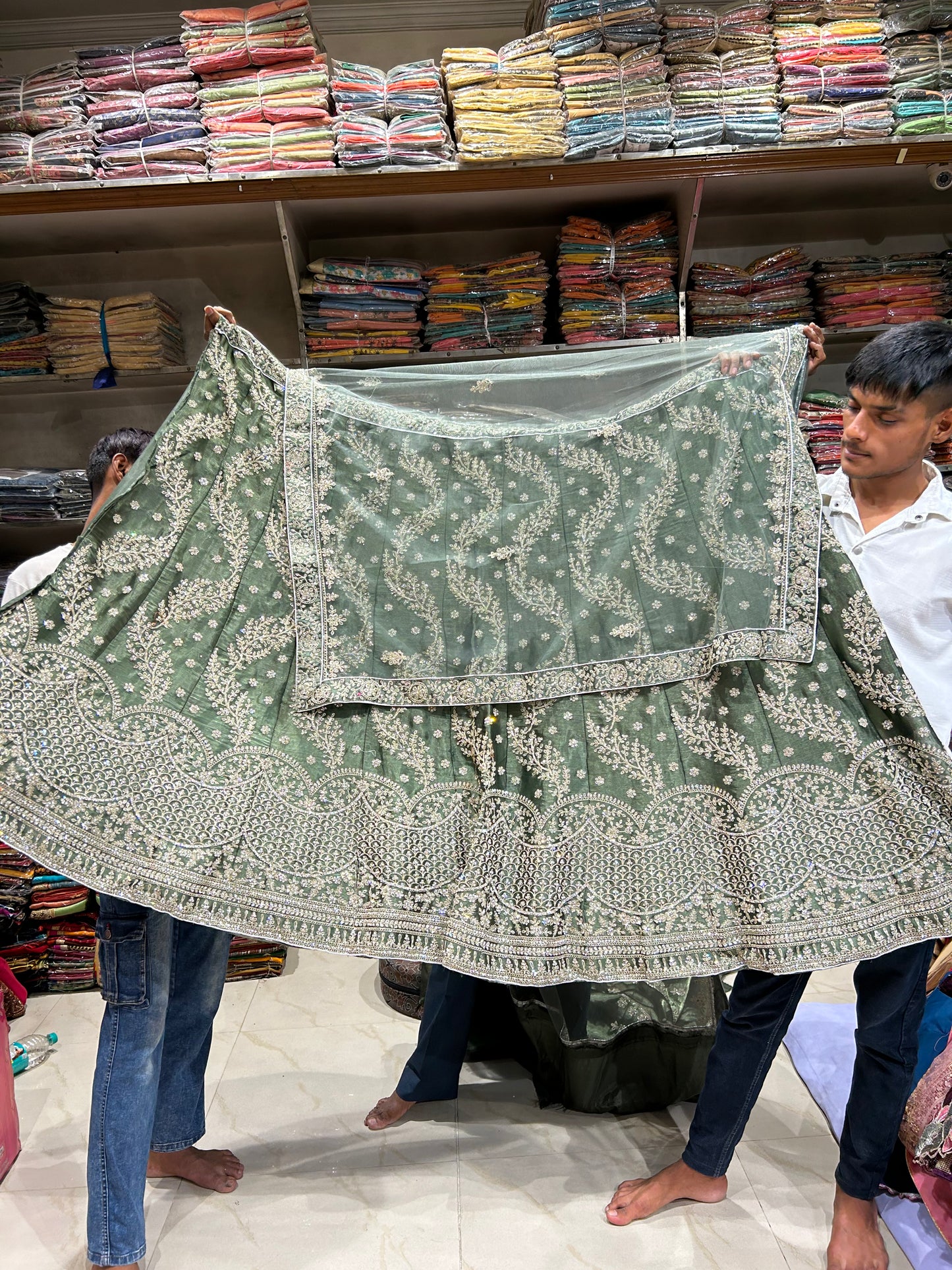 Attractive pista green peacock crop top Lehenga Happy Customer