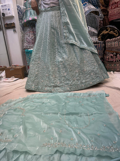 Attractive pista green peacock crop top Lehenga Happy Customer