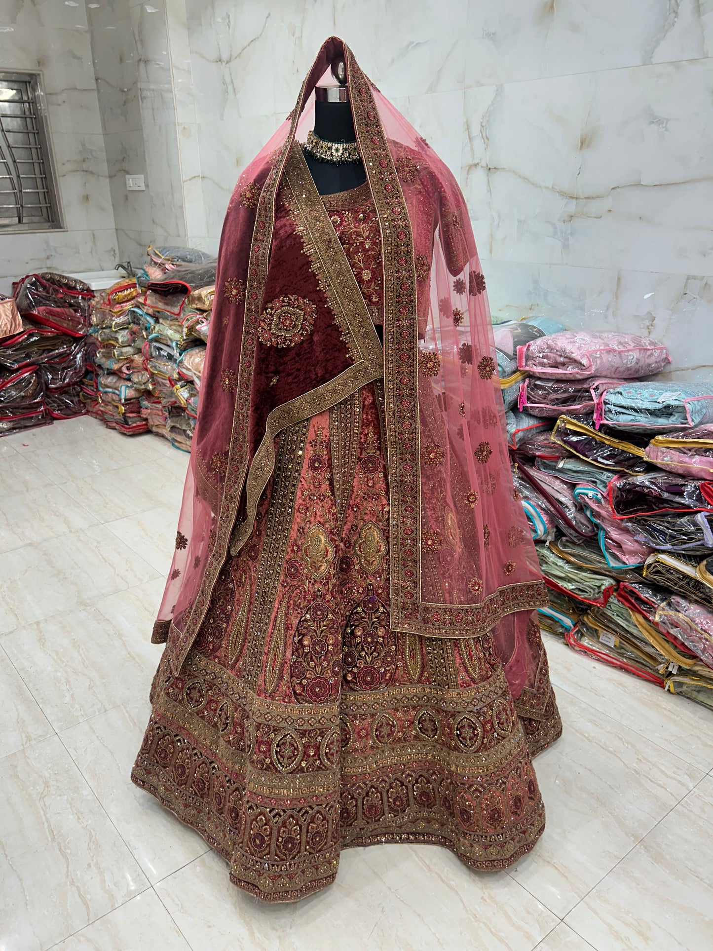 Designer jhumka Maroon bridal lehenga ( happy customer)