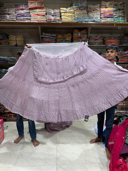 Discover elegance with our Designer Lehenga Collection, perfect for any occasion. These free-size lehengas are thoughtfully designed to accommodate all body types and can be customized to suit your unique style. Crafted to elevate your wardrobe, each lehenga set includes a semi-stitched skirt, unstitched blouse fabric (choli), and a matching chunni (dupatta), making it an ideal choice for weddings, festivals, and special celebrations.