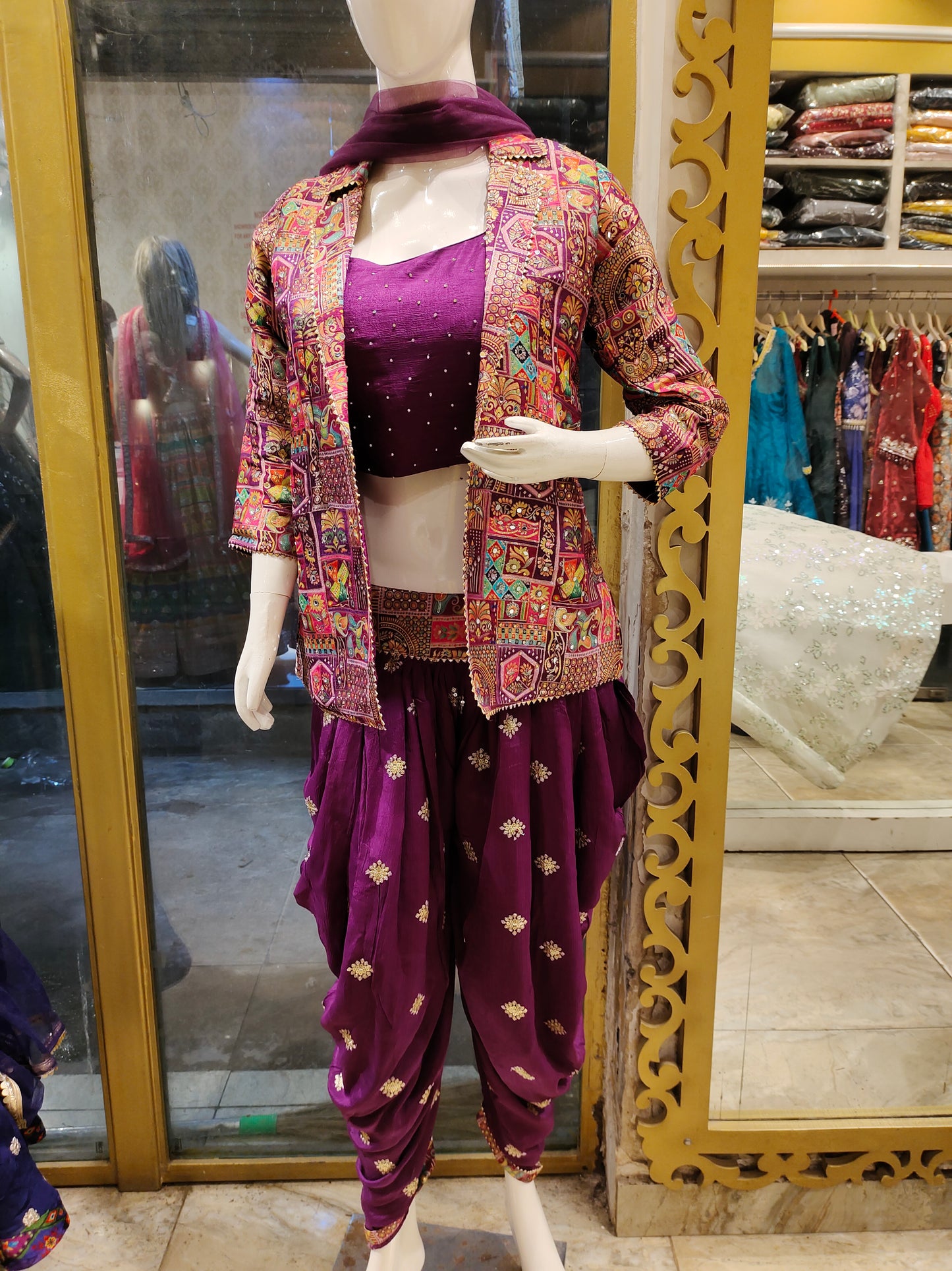 In 2025, pastel tones, floral embroidery, mirror work, and Indo-fusion layers are trending, often paired with coordinated safas and mojris