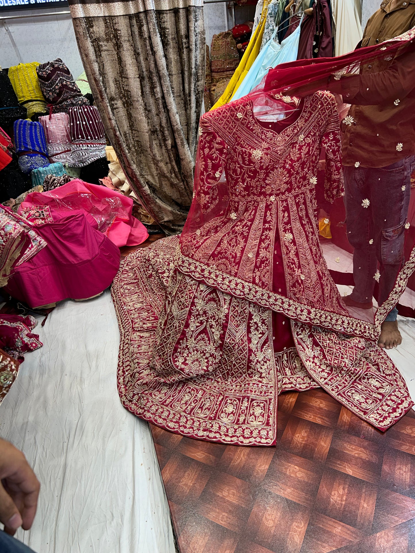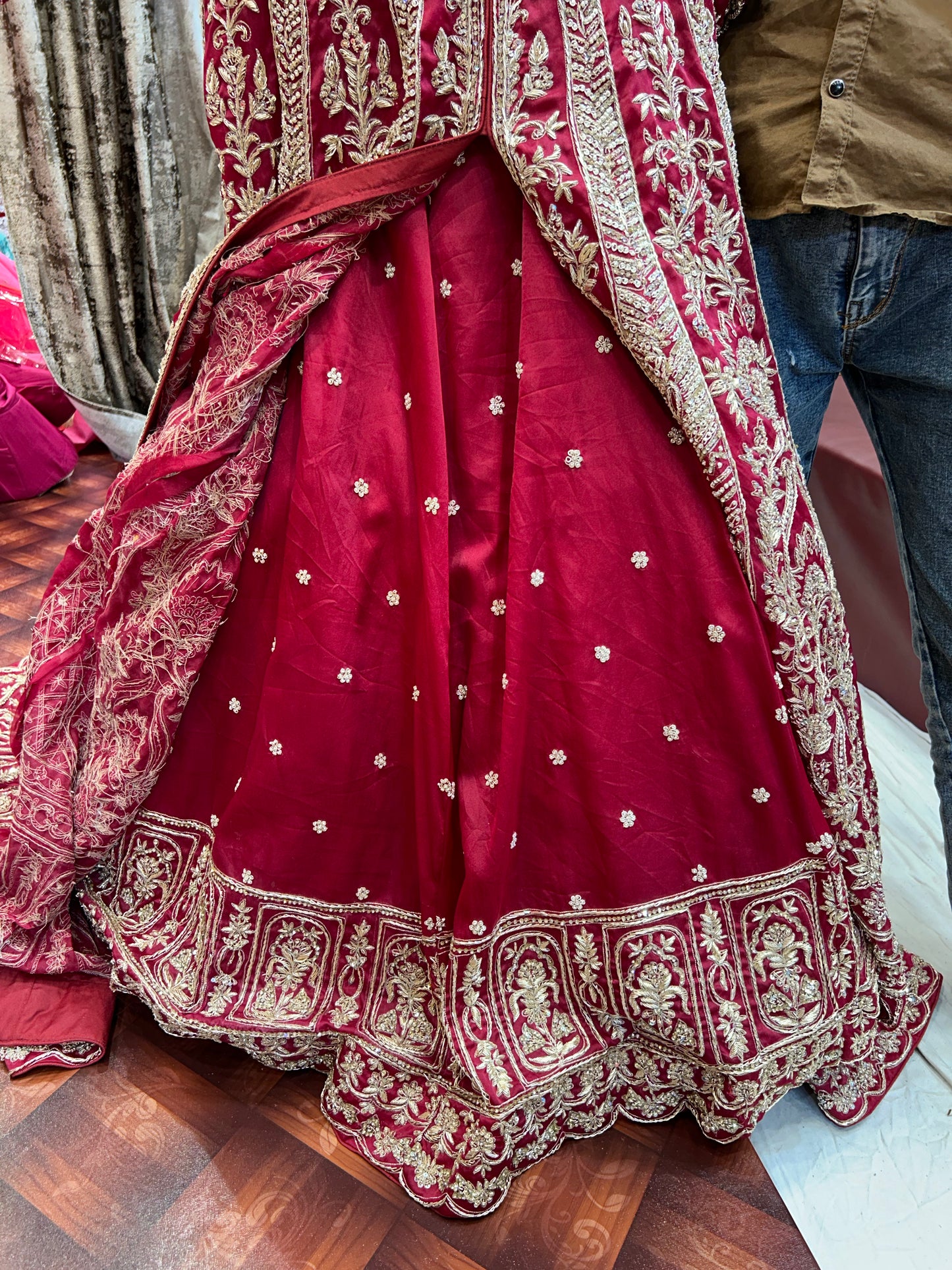 Designer Red Tail Peplum long Dress Farshi Gaharara Pakistani Bridal Dress Muslim Special